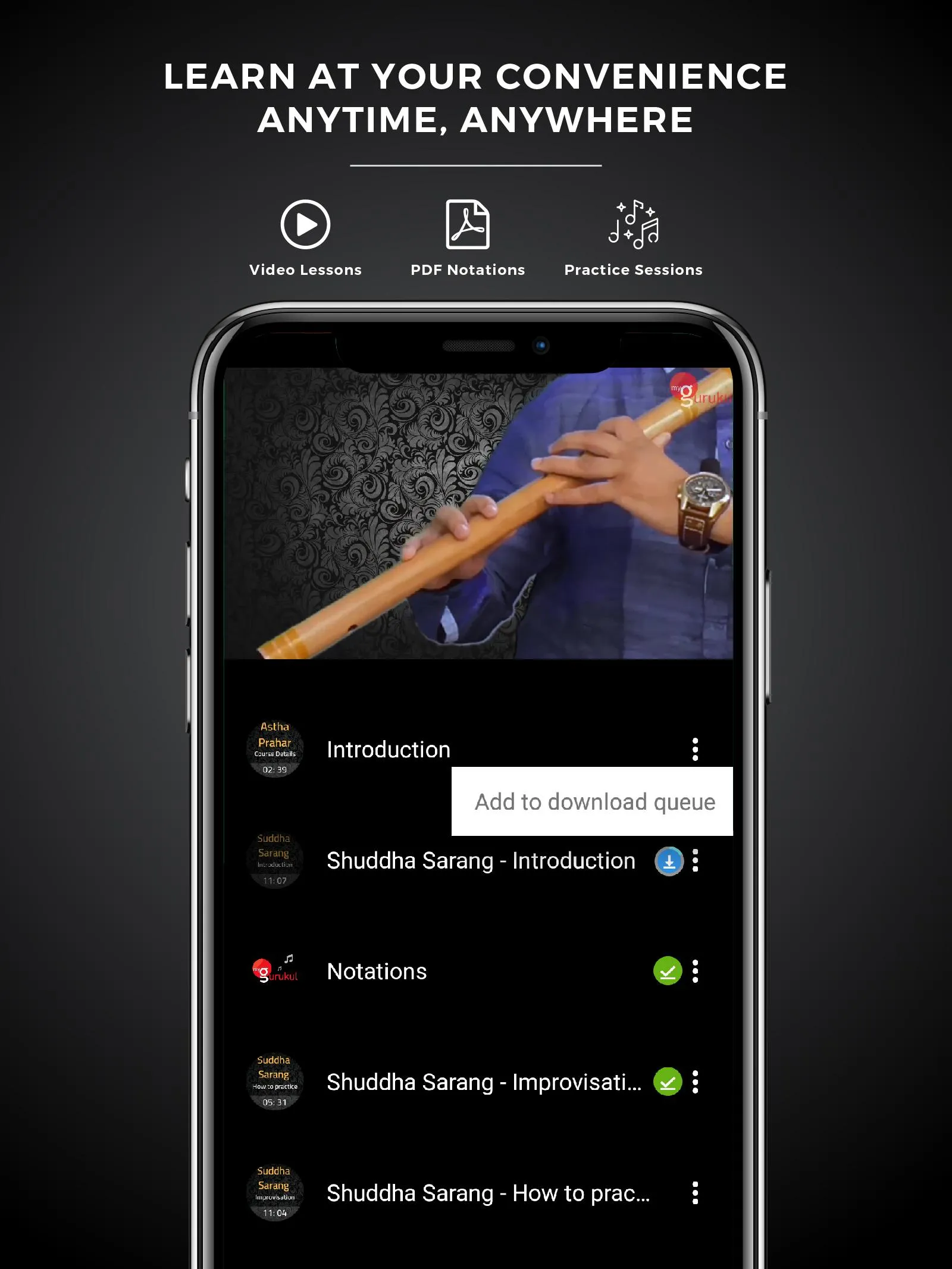 Access finest Music Gurus from anywhere. Access Video Masterclasses & Notations. myGurukul is the first video based platform to learn Indian Musical Instruments and art form. If you wish to learn Instruments as per Indian Style or Hindustani Classical Style and seeking guidance of an expert then myGurukul is the one and only option online. ...