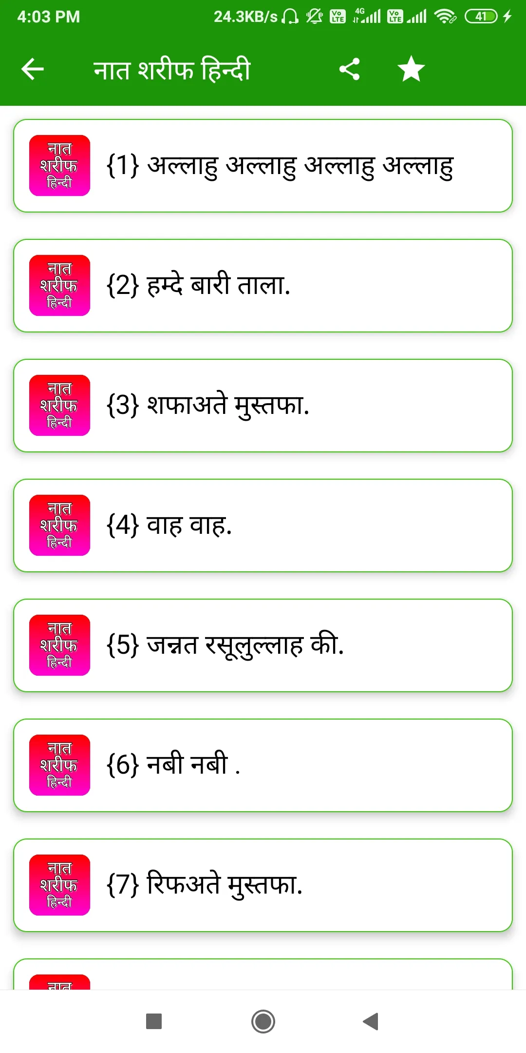 We going to about this Naat Shareef Hindi App. so guys hamne is app Naat Shareef Hindi me bahut sari naato ko shaanil kiya hai hindi me aap is app ko download karke asani se use kar sakte ho, Naat Shareef Hindi app apke liye bahut helpfull hone wali hai is app ko hamne poora hindi me banaya hai aap hindi me is app ko asani se pad sakte ho, Naat Shareef Hindi app best app hone wali hai, guys agr aapko Naat Shareef app ko use karne me koi problem dekhne ko mile to aap hamse problem share kar sakte ho. Naat Shareef Hindi is an Islamic App for Muslim brother and sisters. ...