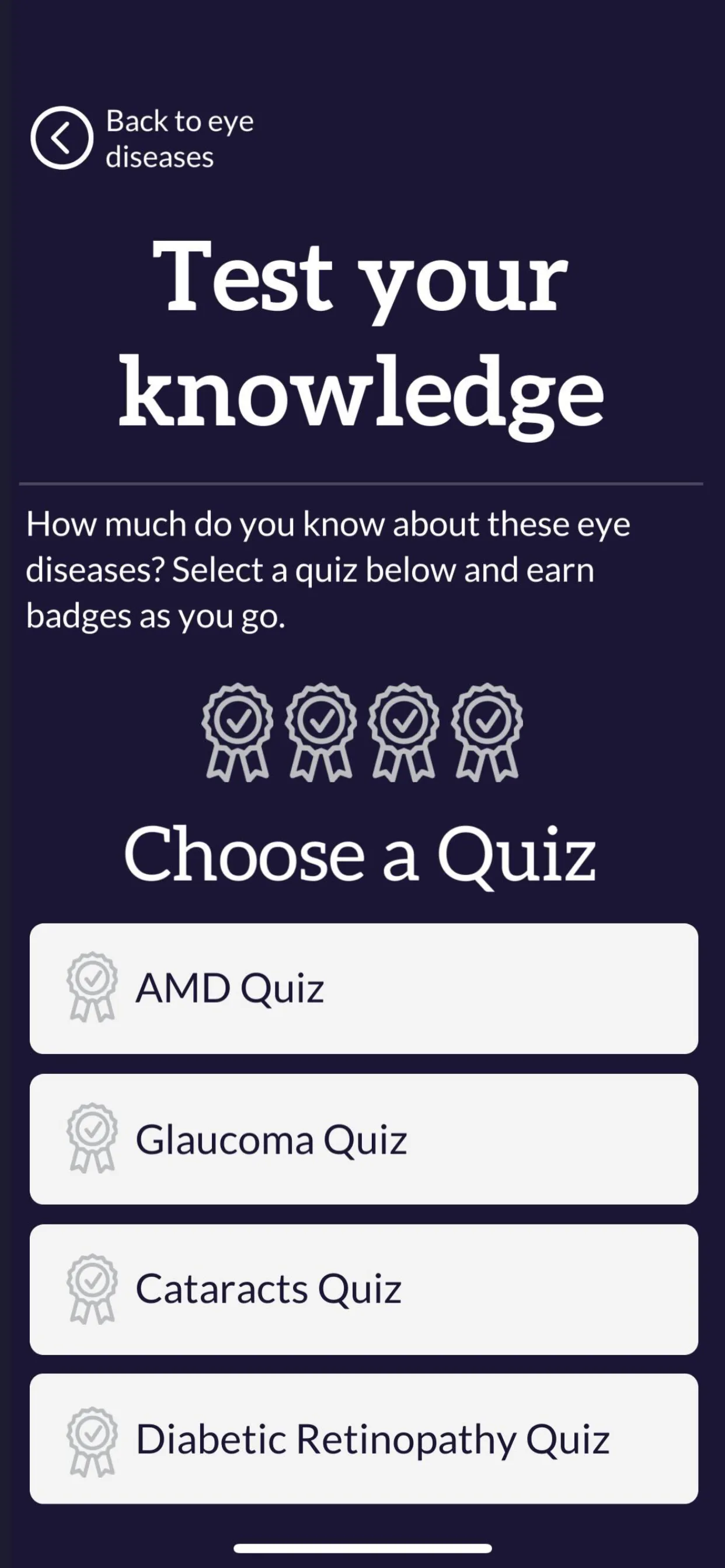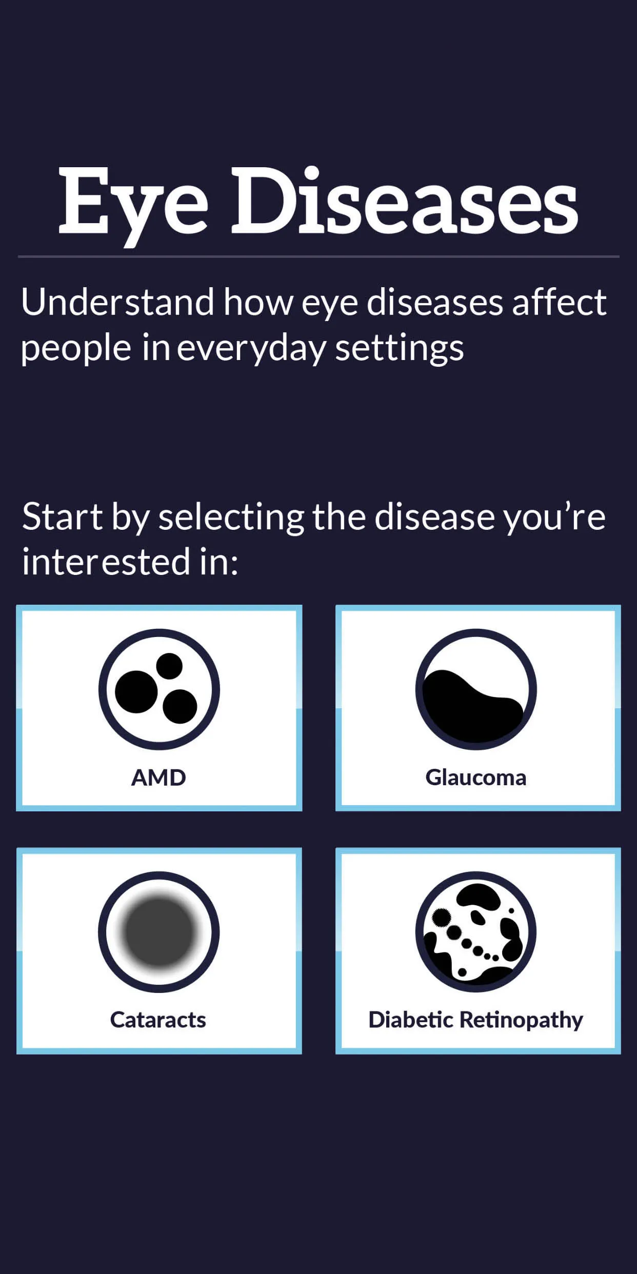 As part of the federal government’s National Institutes of Health (NIH), the National Eye Institute (NEI) is dedicated to sharing accurate eye health information, conducting and supporting innovative research, and training future leaders in the field of vision research. Explore NEI’s virtual reality experience, See What I See, to check out what life might look like with common eye diseases — including age-related macular degeneration (AMD), cataracts, glaucoma, and diabetic retinopathy. The app also features 4 quizzes to check your knowledge about age-related macular degeneration (AMD), glaucoma, cataracts, and diabetic retinopathy. ...
