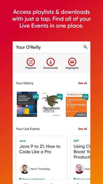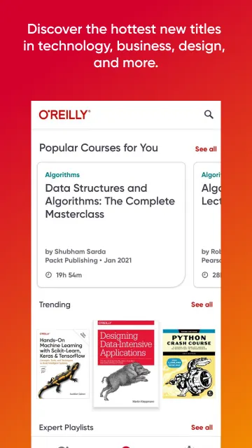 Take O'Reilly online learning with you wherever you go, and put the knowledge of experts and the skills to stay ahead of business and technology trends in your pocket. With the O’Reilly app, you can: Read, watch, or listen on the go: Explore books, videos, training sessions, courses, and more—online or off. ...