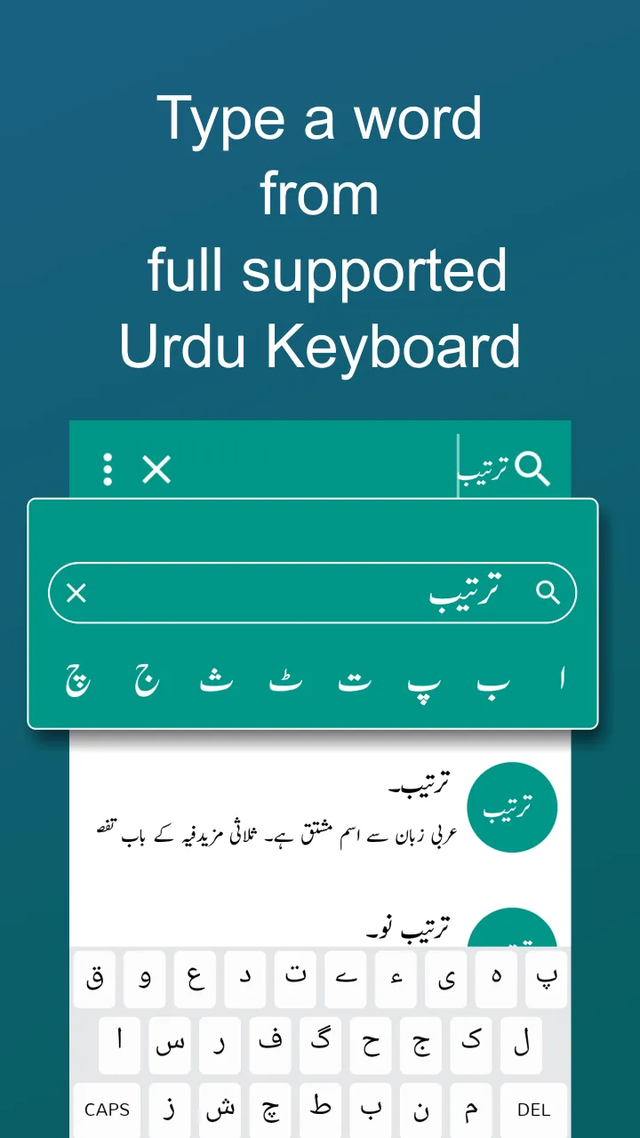 Offline Urdu Lughat is the first totally offline available Urdu to Urdu dictionary with complete details of a word. Urdu Lughat Dictionary contains more than 2 lack words. Urdu Lughat users can use both the English and Urdu keyboards to search a word. Features: * User can use both the English and Urdu keyboards to search. * User can easily change the text size. * And Easily share with friends. * Easily add words to favorite list.