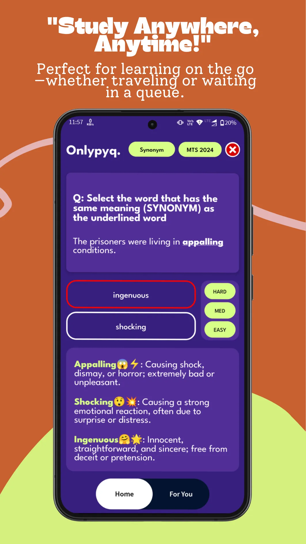 Onlypyq – Your Ultimate SSC English subject Preparation App Tired of wasting time on social media? Onlypyq is a casual vocabulary learning app designed to help you prepare for SSC Vocab anytime, anywhere in Quiz format — whether you're standing in a queue, traveling, or taking a short break. Say goodbye to doom scrolling and use your time productively! SSC Vocab features a handpicked collection of previous years’ vocabulary questions from SSC CGL, CHSL, CPO, SELECTION POST, STENOGRAPHER, SSC GD, SSC MTS, RRB PO, SBI PO, IBPS CLERK and various state exams conducted by TCS, SSC or IBPS. ...