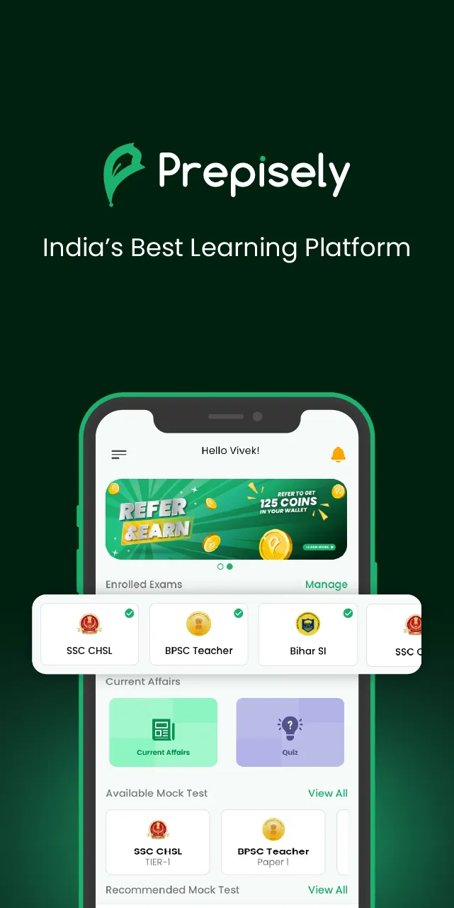 Welcome to Prepisely! Download the Prepisely app and get: Mock Test with real exam level Previous Year Exam papers Detailed Scorecard Analysis with Area of Improvements...