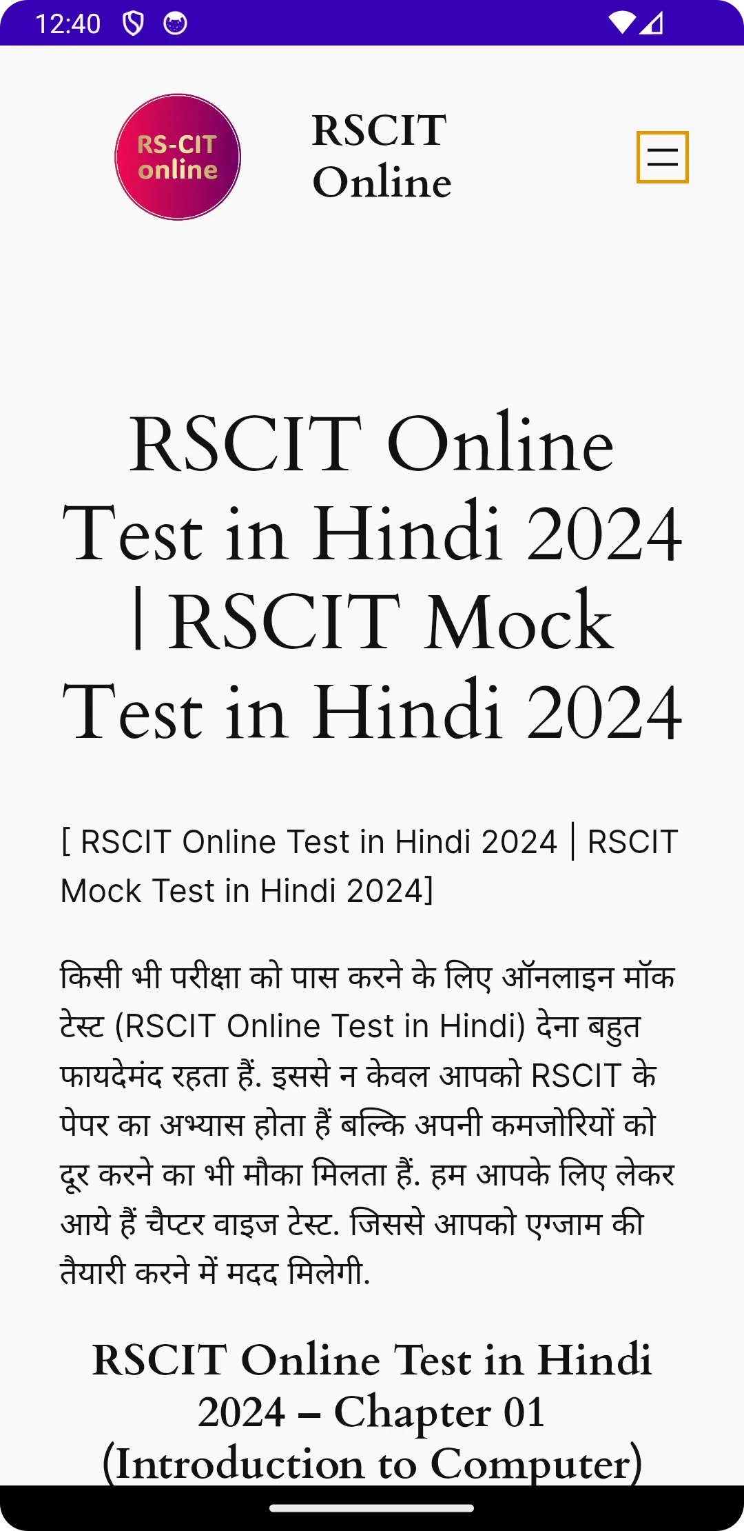 RSCIT Online is a useful app for the RSCIT course. This app contains RSCIT Chapter-wise Notes, RSCIT Online Assessment Answers, Online RSCIT Model Test Paper, RSCIT Answer Key, RSCIT Result and information required for RSCIT course. Features: ✅ RSCIT Online Assessment Q&A...