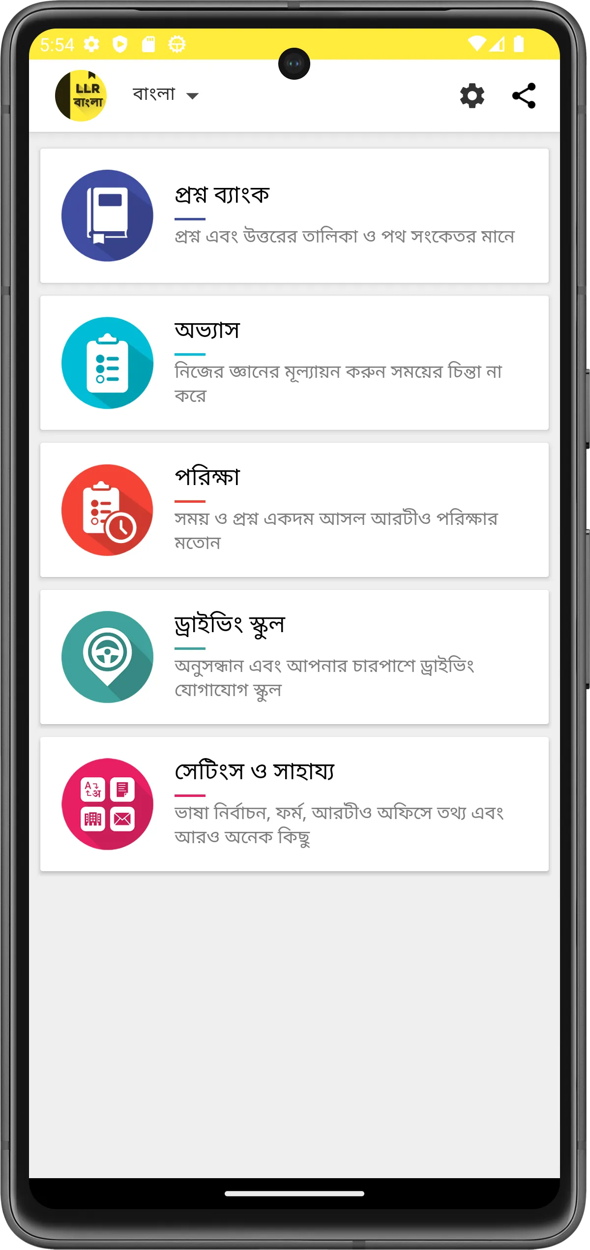 LLR Bangla is a Driving Licence Test practice app available in Bangla (বাংলা), Hindi (हिन्दी) and English. Are you appearing for Learning Licence Test in RTO West Bengal and willing to practice before actual RTO test? Look no further than LLR Bangla. This app has been especially created for RTO West Bengal and it offers largest collection of learning licence test questions and answers, road signs and their meaning and other useful information in Bangla (বাংলা), Hindi (हिन्दी) and English. 📙 QUESTION BANK: Questions & Answers: Comprehensive list of questions and their answers as provided by RTO West Bengal. Road Signage: Traffic and road signs and their meaning. ...