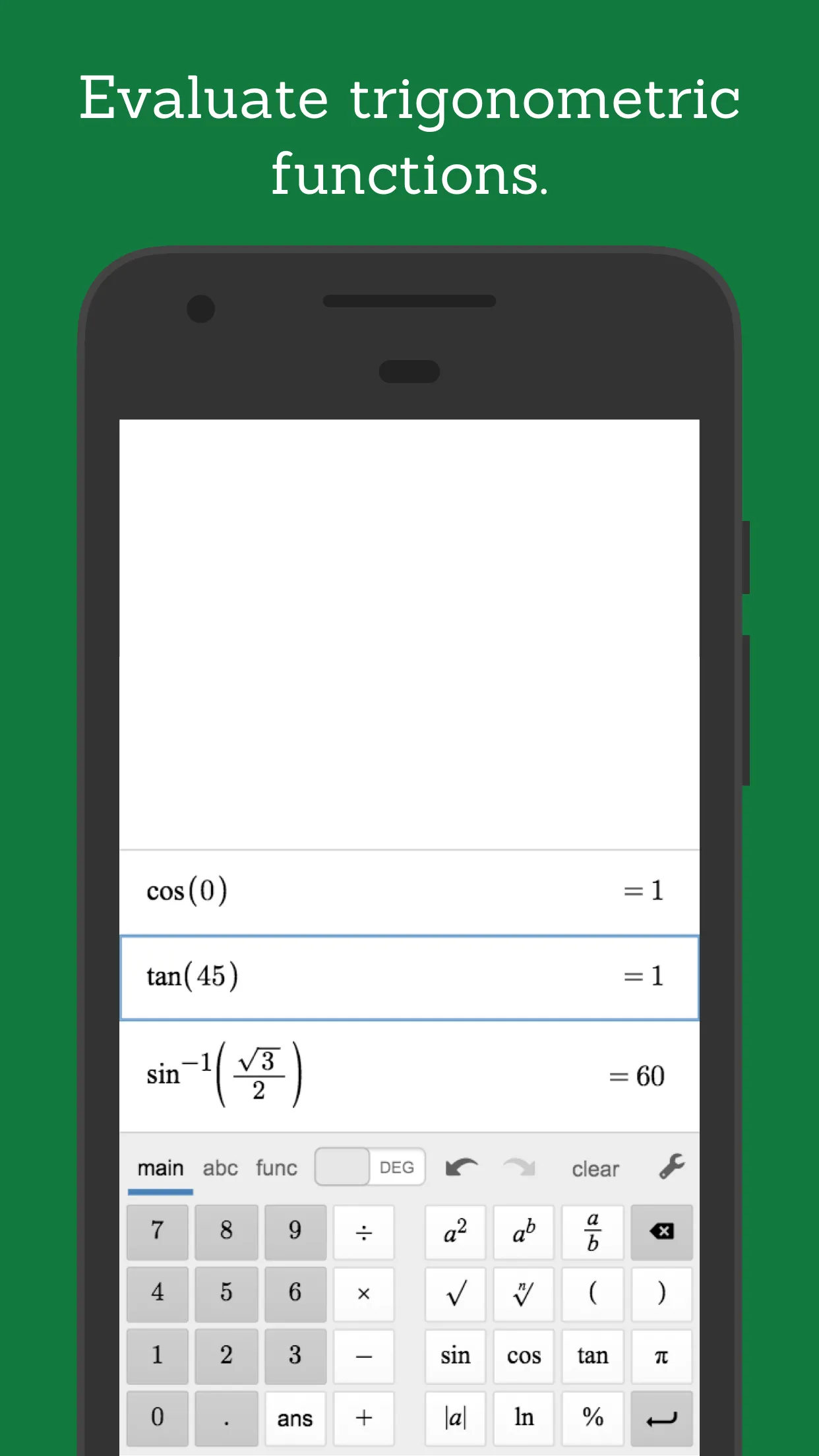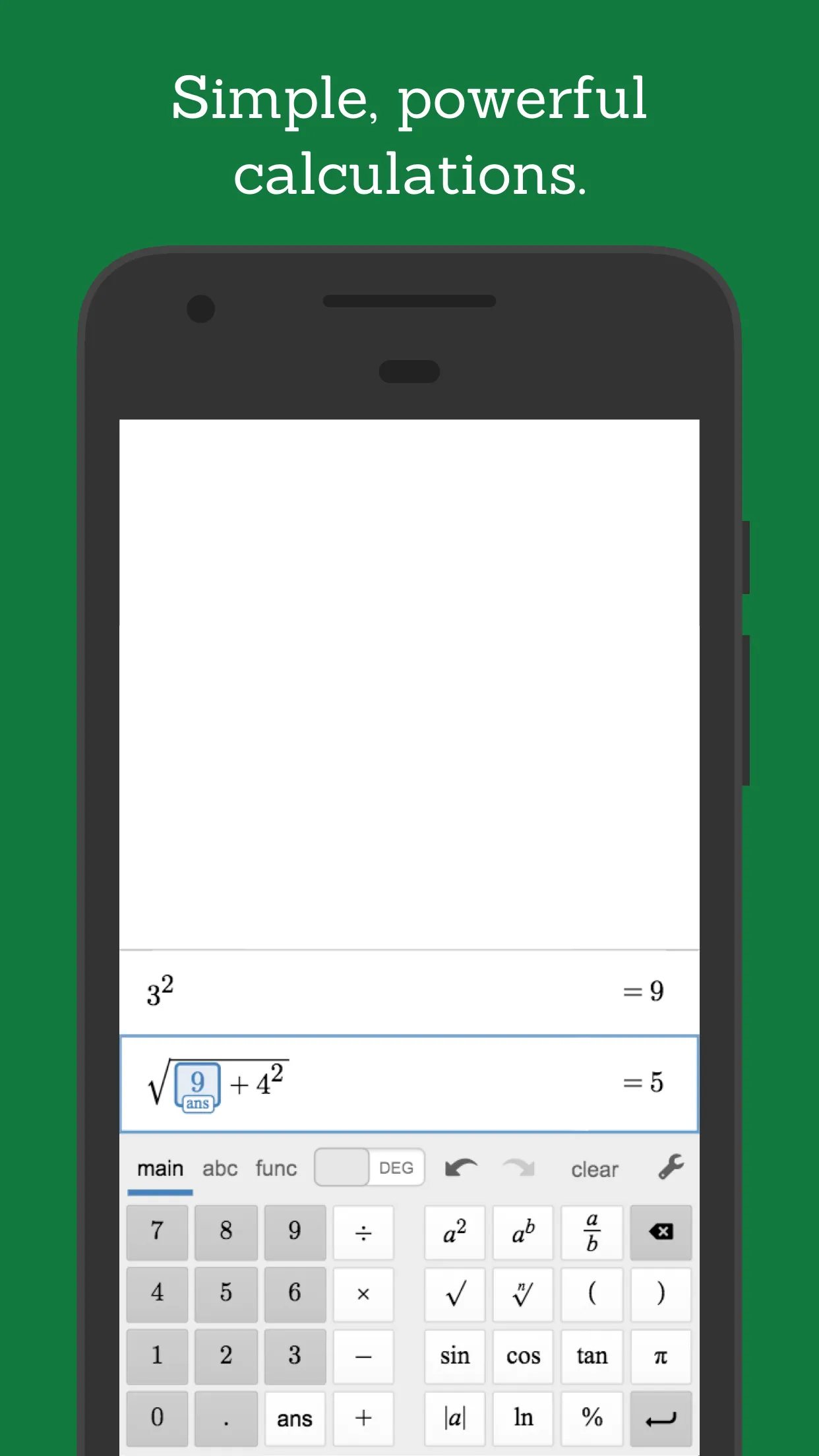 Move beyond arithmetic with the Desmos scientific calculator! In addition to the basic operations, take advantage of a variety of built-in functions for exploring trigonometry, statistics, combinatorics, and more. Or, define and evaluate your own functions -- all for free. At Desmos, we imagine a world of universal math literacy where math is accessible and enjoyable for all students. To that end, we’ve built a simple yet powerful scientific calculator that runs on the same blazingly fast math engine as our next-generation graphing calculator, but with a more streamlined set of features, for those times when you just don’t need a graph. It’s intuitive, beautiful, and completely free. Features: ...