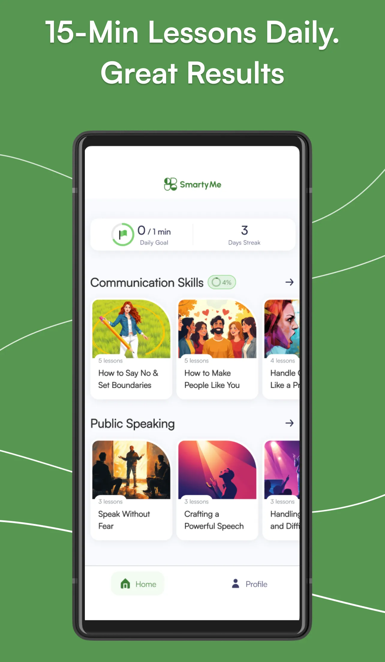 Unlock Smarter Learning with SmartyMe — Your Personal Knowledge & Communication Skills Companion "Loads of content. Great concept to be able to learn whenever and wherever you want by just reaching for your phone. Ideal scenario for me to just accumulate knowledge and widen my horizons." David Forecast - July 2025 SmartyMe is a powerful and flexible education and microlearning app designed to fit your lifestyle. Whether you're aiming for personal growth, career success, or simply satisfying your curiosity, SmartyMe makes learning both enjoyable and efficient. Through daily microlearning with 15-minute interactive lessons, you'll build knowledge, develop communication skills, and improve how you speak eloquently in any setting....