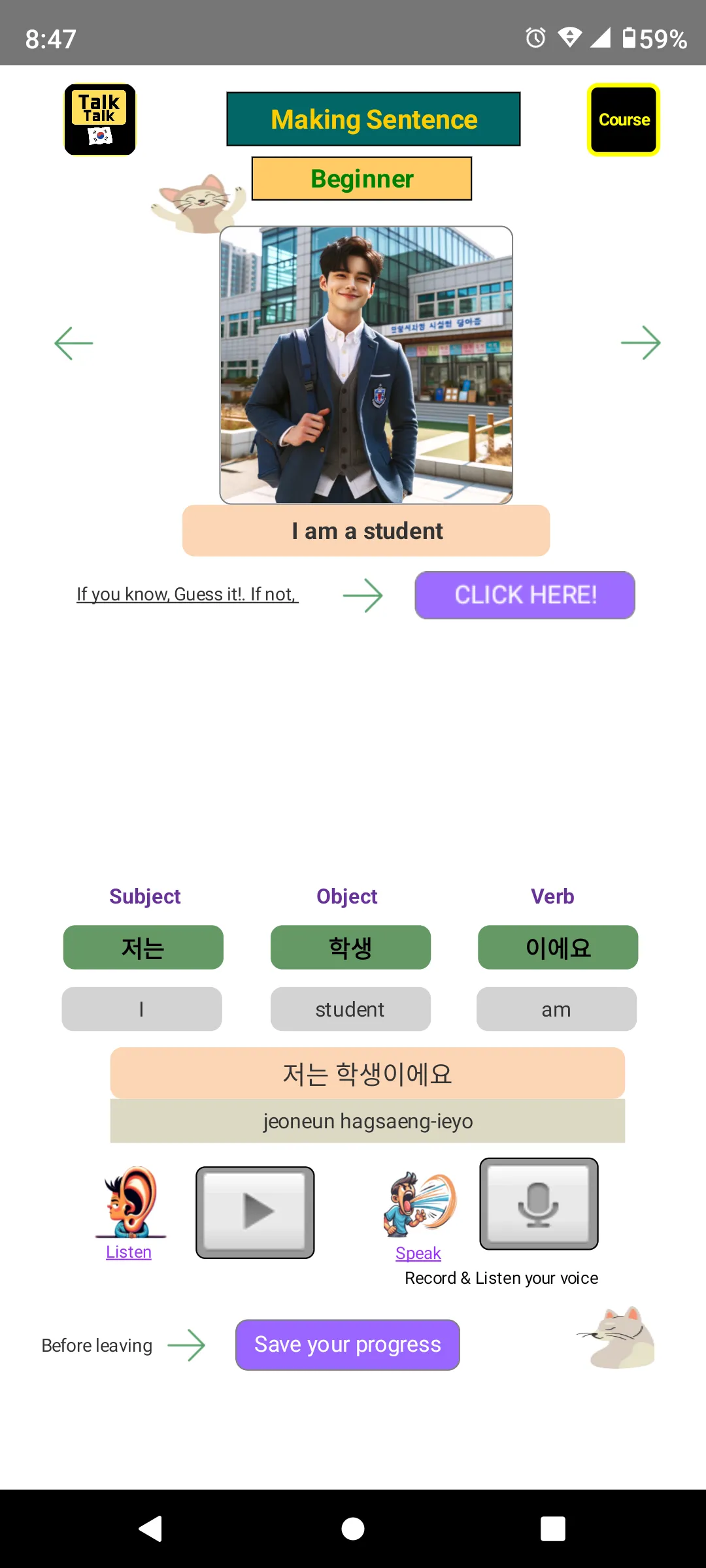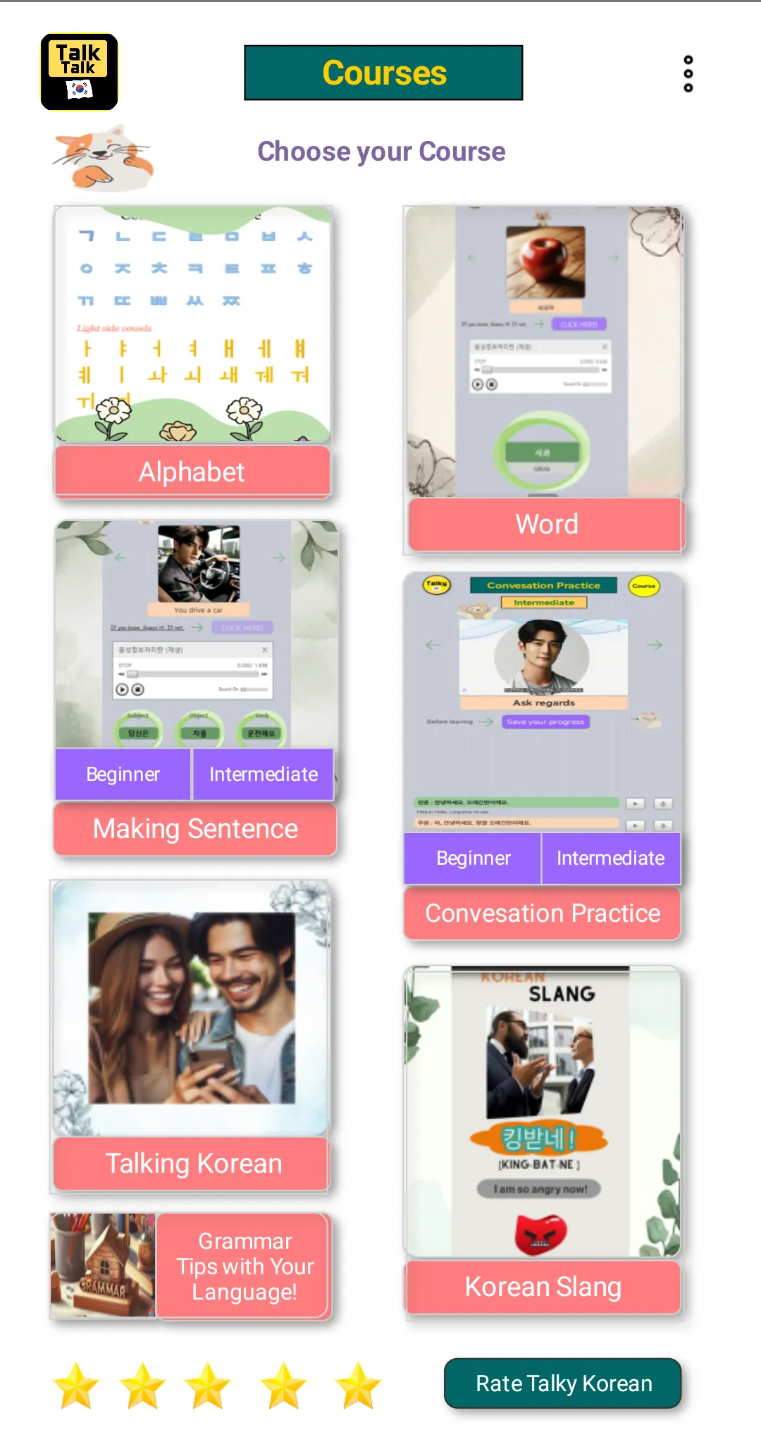 1. Users can learn everything from basic alphabets, vocabulary, grammar, sentence construction practice, situational conversation practice, and talking practice. 2. There is a community forum function, so you can get immediate answers to your questions while studying through the forum, which is a distinct advantage. 3. To increase the effect of reviewing what you have studied, we have linked interesting short videos, and various Korean slangs that are actually used by Koreans have also been adde...