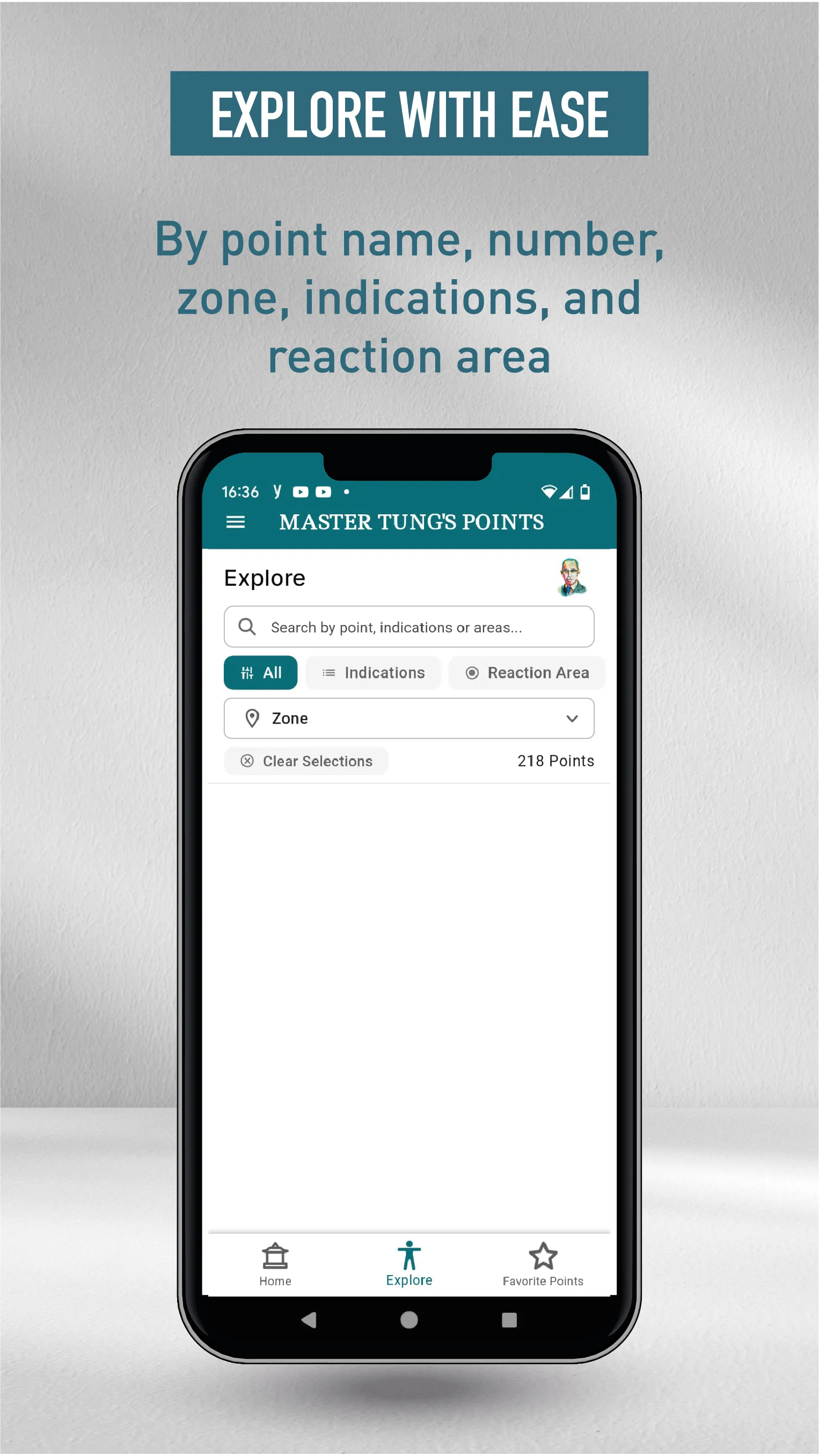 Unlock the power of Master Tung's acupuncture with our comprehensive, user-friendly app. Perfect for both seasoned practitioners and students of Master Tung's Acupuncture, Acupuncture and Traditional Chinese Medicine (TCM) practitioners that want to learn Tung's acupuncture. IMPORTANT MEDICAL DISCLAIMER: This app is for informational and educational purposes only. It is not intended to be a substitute for professional medical advice, diagnosis, or treatment. Always seek the advice of your physician or other qualified healthcare provider with any questions you may have regarding a medical condition. Never disregard professional medical advice or delay seeking it because of something you have read or seen in this app. Key Features: • Extensive Point Library: Access 300+ Master Tung points with detailed information on locations, indications, and techniques....