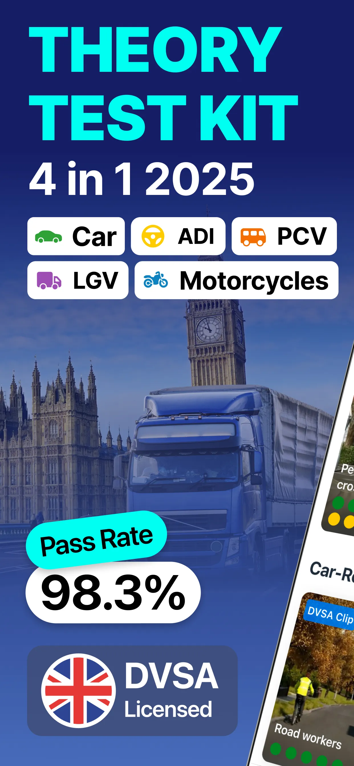 Prepare for your 2025 DVSA Theory Test with Driving Theory Test Kit UKDL. Well-designed learning courses, road signs, updated theory mock tests, highway code, driving laws are available for drivers. Improve your road safety awareness and pass your driving theory test on first try. Supported offline driving practice: Practice anytime, anywhere. Suitable for: - Car drivers in GB & NI for the DVSA car theory test (Great Britain & Northern Ireland) - Motorcyclists in GB & NI studying for motorbike theory exam...