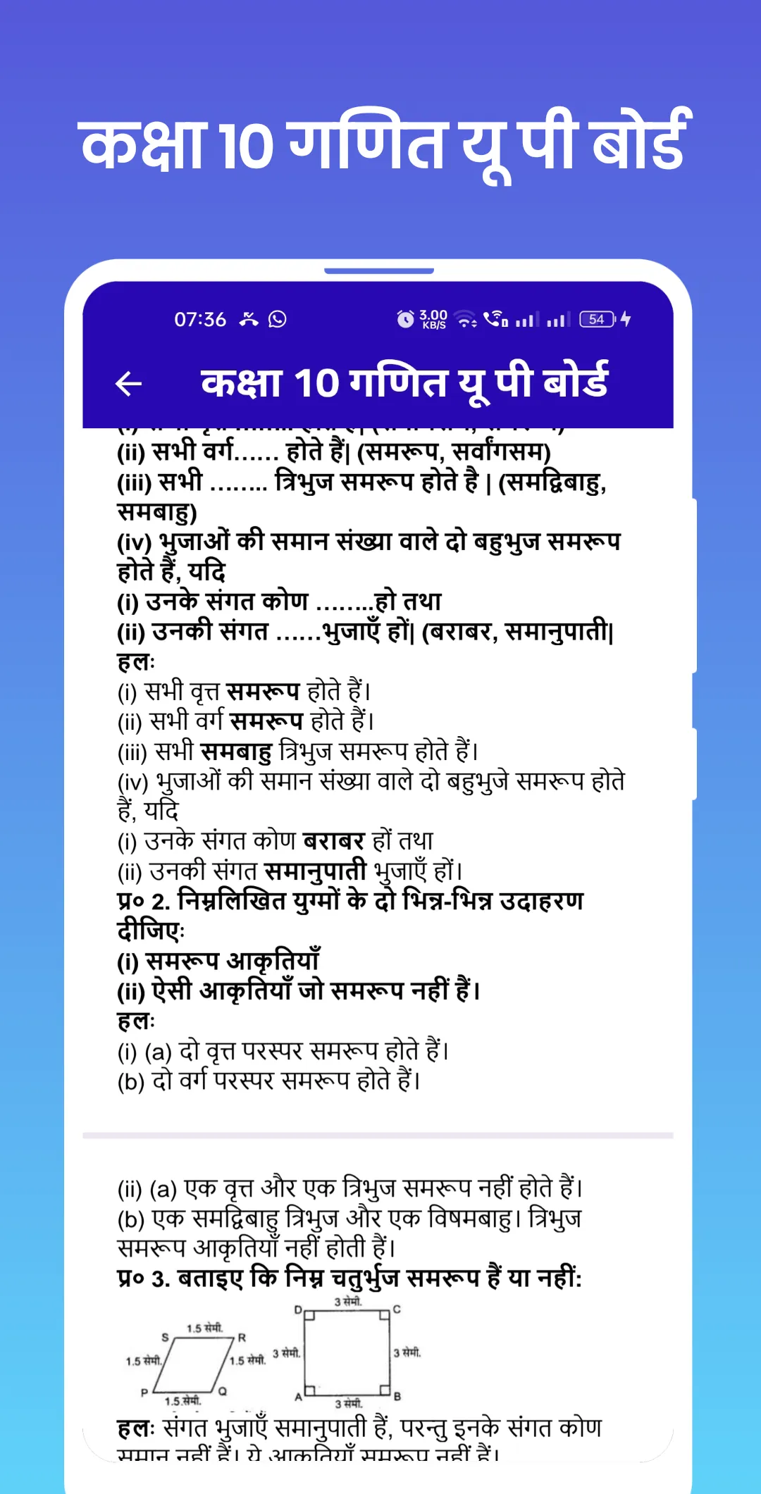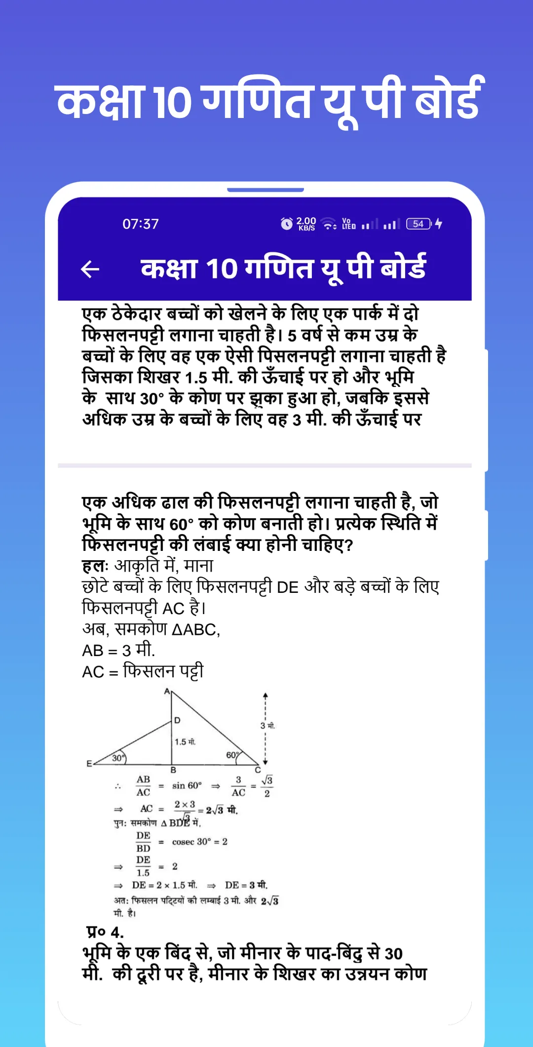 This application contains class 10 math solution up board in hindi NCERT Book note chapter wise with brief description with pictures. This application is design for class 10th student ganit each chapter contain detail note with chapter wise. This application contain 15 numbers of chapter. Each chapter deal with must to know point. I think this app is must have app for up board class 10 student. This app contains notes of all the chapters included in the up board class 10 math book. This Application Contains:- Chapter 1 Real Numbers (वास्तविक संख्याएँ) Chapter 2 Polynomials (बहुपद) Chapter 3 Pairs of Linear Equations in Two Variables (दो चरों वाले रखिक समीकरणों का युग्म)...