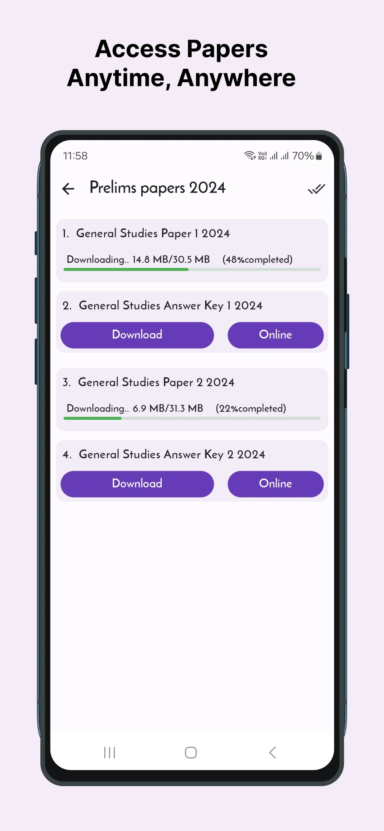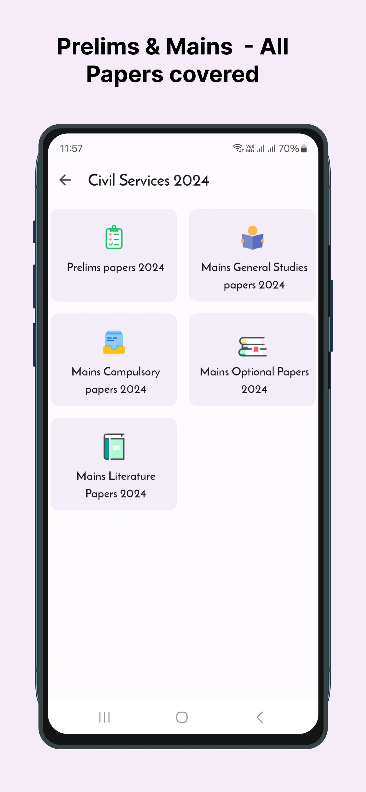 For the best preparation of 2023 UPSC Civil Services Prelims and Mains , this app contains UPSC papers of Prelims and Mains of year 2024, 2023, 2022, 2021, 2020, 2019, 2018, 2017, 2016, 2015, 2014, 2013, 2012, 2011, 2010 & 2009. It also contains old papers from 2008 to 1990.You can also download and read offline all papers. 1. Prelims papers With Answer Key of year 1990 to 2024. - General Studies Paper 1 & 2 with Answer Key 2. Mains General Studies papers of year 1990 to 2024....