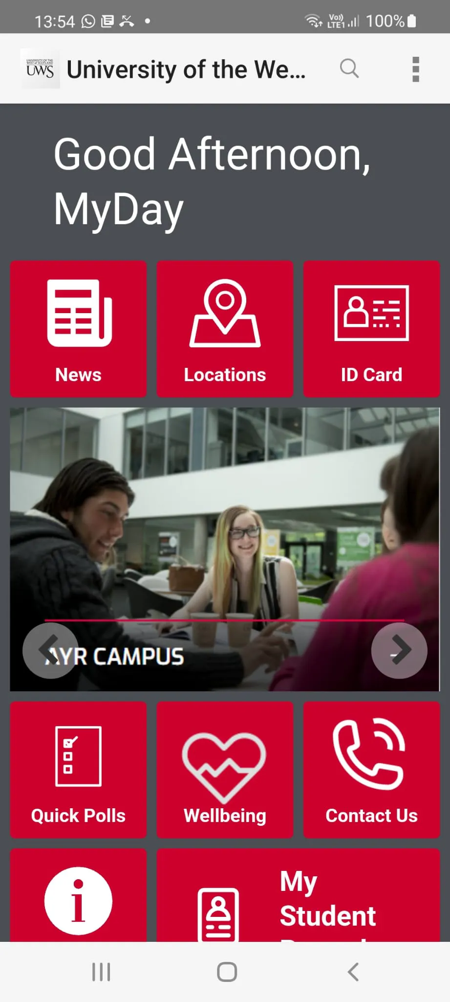 The UWS Student App provides an easy-to-use, personalized, and effective system for all of your student needs. It will be your go-to App to get the most out of your time as a UWS student – and beyond. Integrated features within the app include your student email; digital ID card, your virtual learning environment; student surveys; timetables; Student Support Services; OneDrive; your student record; Your Union; The Library; and all the latest news and information.
