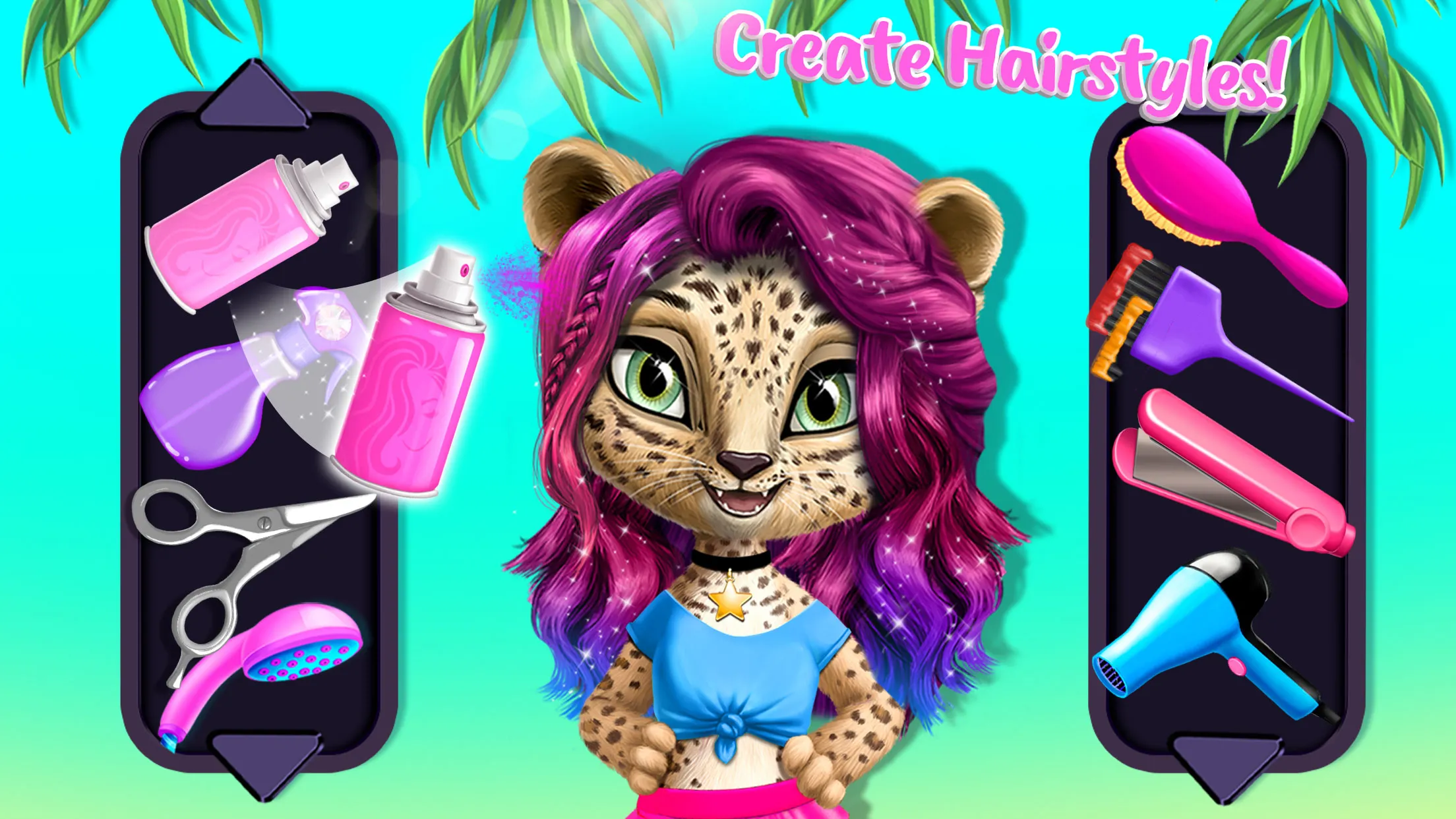 Crazy Animal Hair Salon goes to sunny Australia! Pack your hairstyling tools and get ready for new virtual pet fashion makeovers and animal beauty salon adventures! Meet the cute pet beauty salon clients: leopard Amy, baby koala Maggie, kangaroo Sydney and snake Crystal. Help your new pet friends express themselves through style with crazy haircuts, beautiful makeup and fashionable outfits in the best pet beauty salon game for girls! STYLE LEOPARD AMY World's most fashionable cat girl Amy needs a new hair and style makeover! Create amazing hairstyles for her! Do Amy’s makeup and change her eye color. Try on latest fashion trends with leopard Amy! TAKE CARE OF KOALA MAGGIE...