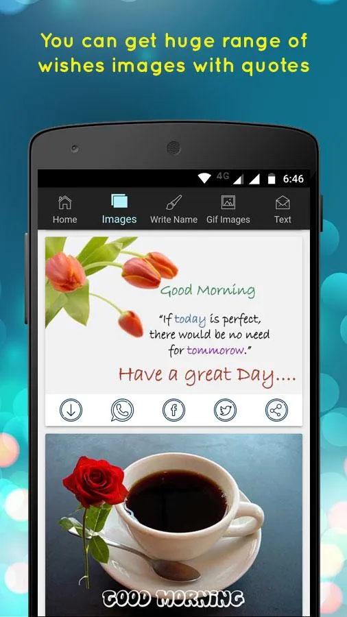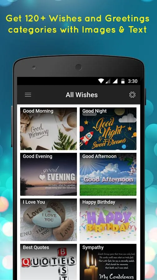 Absolutely FREE Greetings & Wishes Images / Write name on Image / Text Messages / Cards . Now, you can share your feeling and willingness to your friends and family in single click using this app. we are providing you ALL WISHES & GREETINGS IMAGES app. which has 8 main categories like Daily wishes, Special day wishes, Hindu, Christian, Muslim, Jewish, Sikh and Pagan Festival wishes. It has 120+ different sub categories like, Good Morning, Women's Day, Happy Diwali, Merry Christmas, Happy New Year wishes and many more. In each category you will get lots of unique wishes images with quotes, cute animated images, GIF images and text messages. ...