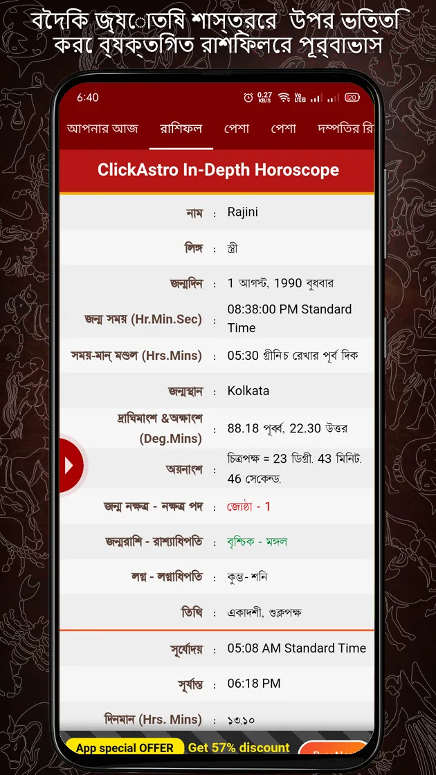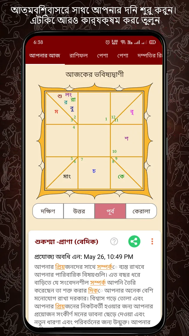 Get to know how the planets influence your daily life. Astrology in Bengali : Bangla Rashifal provides daily updates including Dainik rashifal in Bangla. The app is based on Indian Vedic astrology in Bengali. Get daily updates on Panchang, Muhurthas, Rahu Kaal, etc. You can now even consult our panel of renowned astrologers from across India to seek answers to your astrological queries and find remedies for your problems and gain deeper insight into your future. Key App Highlights: ✓ Dainik rashifal in Bangla ✓ Bangla panchang ✓ Online horoscope in Bengali...