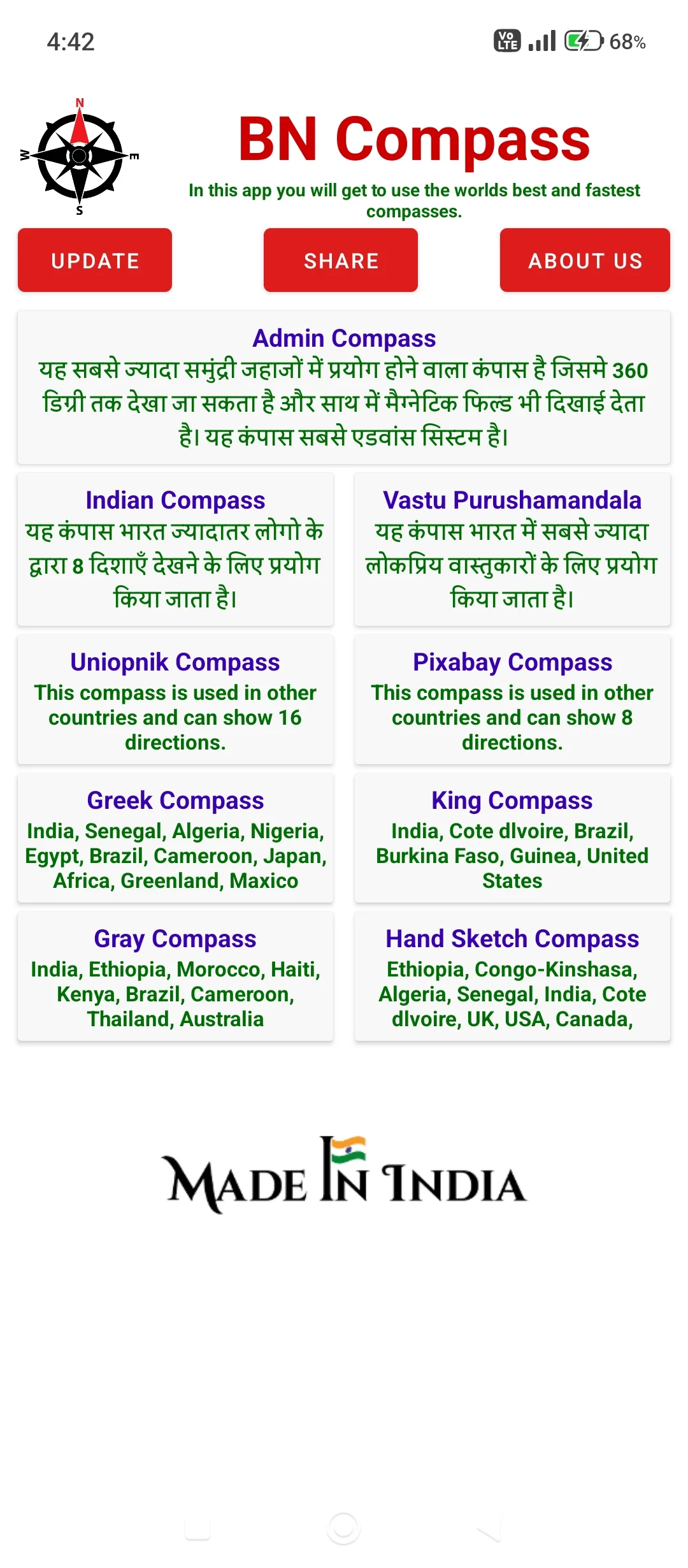 In this app you will get to use all different types of compass.