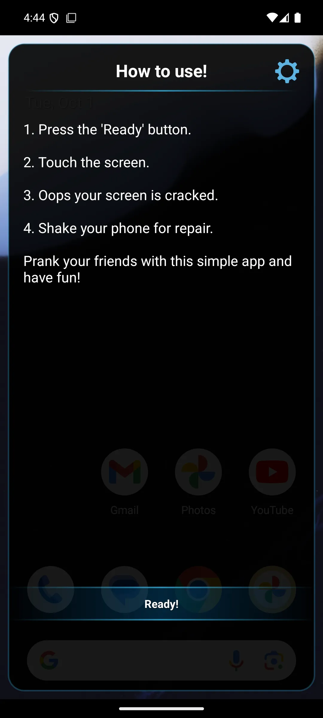 The Broken Screen Prank – The Ultimate Crack Prank App Introducing the best and most realistic prank app to trick your friends and family! The Broken Screen Prank is a fun and entertaining app that simulates a fake broken screen on your phone. Watch the shocked faces when they think they've damaged your device! Please note: The Broken Screen Prank is a harmless app that simulates a cracked screen effect. Your device remains perfectly safe and functional. ...