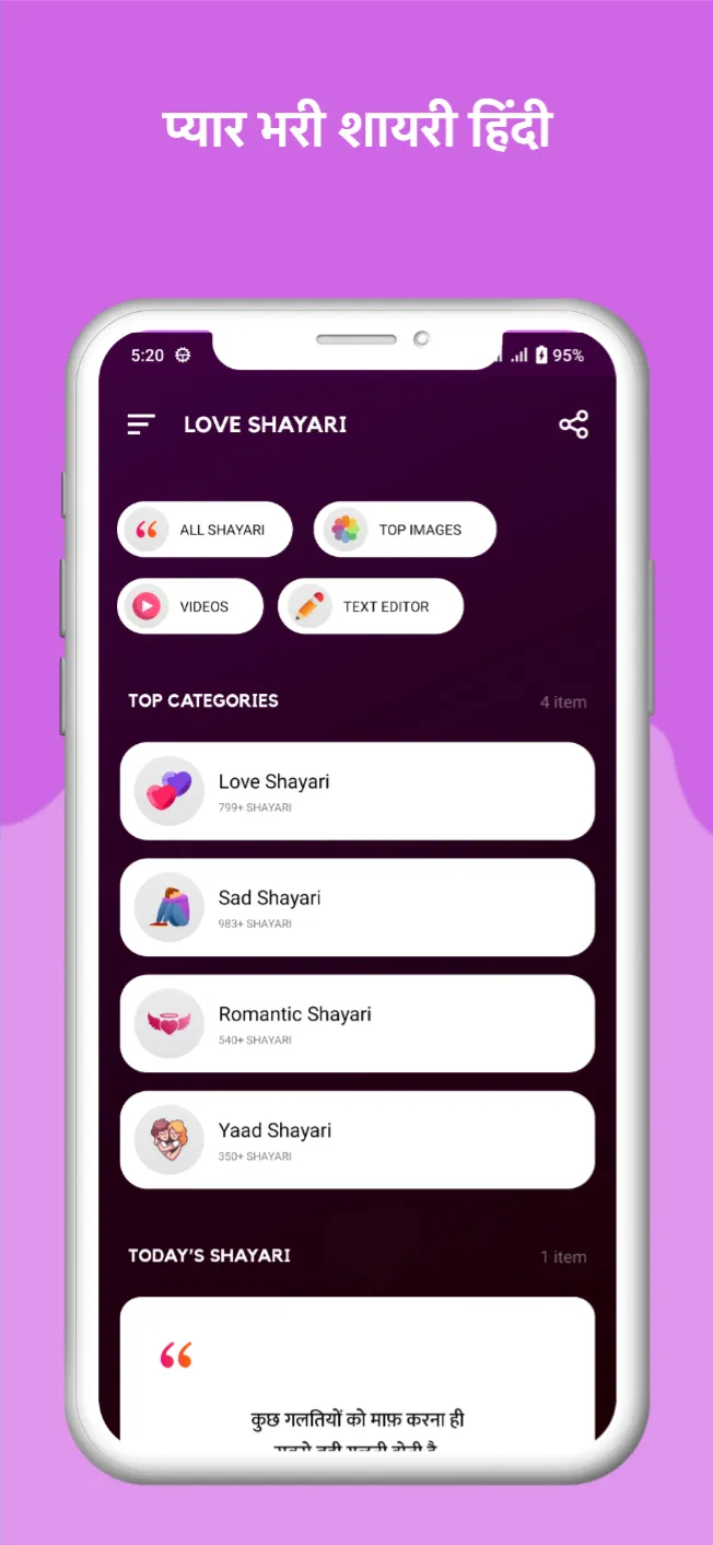 Shayri Ki Dayri 2024 We are happy to present a beautiful Ishq mohabbat love sad true love shayri app for you True Love Shayari Hindi. New hindi sher love sad is a pyar bhari shayari and online shayari app. Here you are able to explore shayri for girlfriend more than 10000+ shayari on ishq 2024. All yaad shayari with cool emoji 🎭 . super shayari hindi and super fast shayari available in इश्क़ शायरी application Hindi Shayri app is a hindi shayari container application. It is very super shayari download easy to use and very colourful and all shayaris are available offline sayari. This app brings all types of popular shayri categories like true love heart touching sher shayari broken and holi diwali wishes & shayri new year pyar bhari romantic hindi shayari love sad and images and photos Sayri Ki dayri. ★ Sayri With Best Images & Pics...