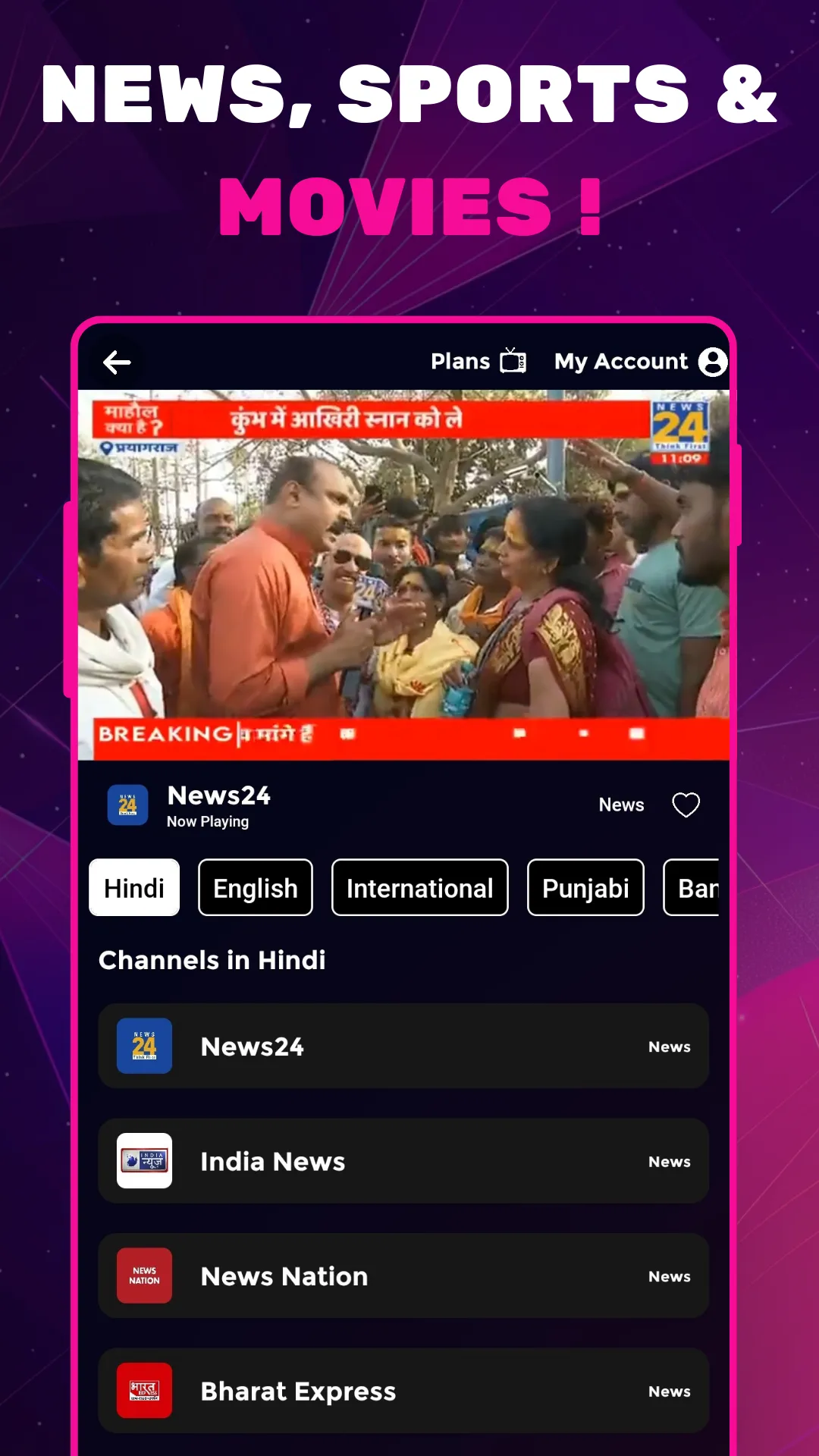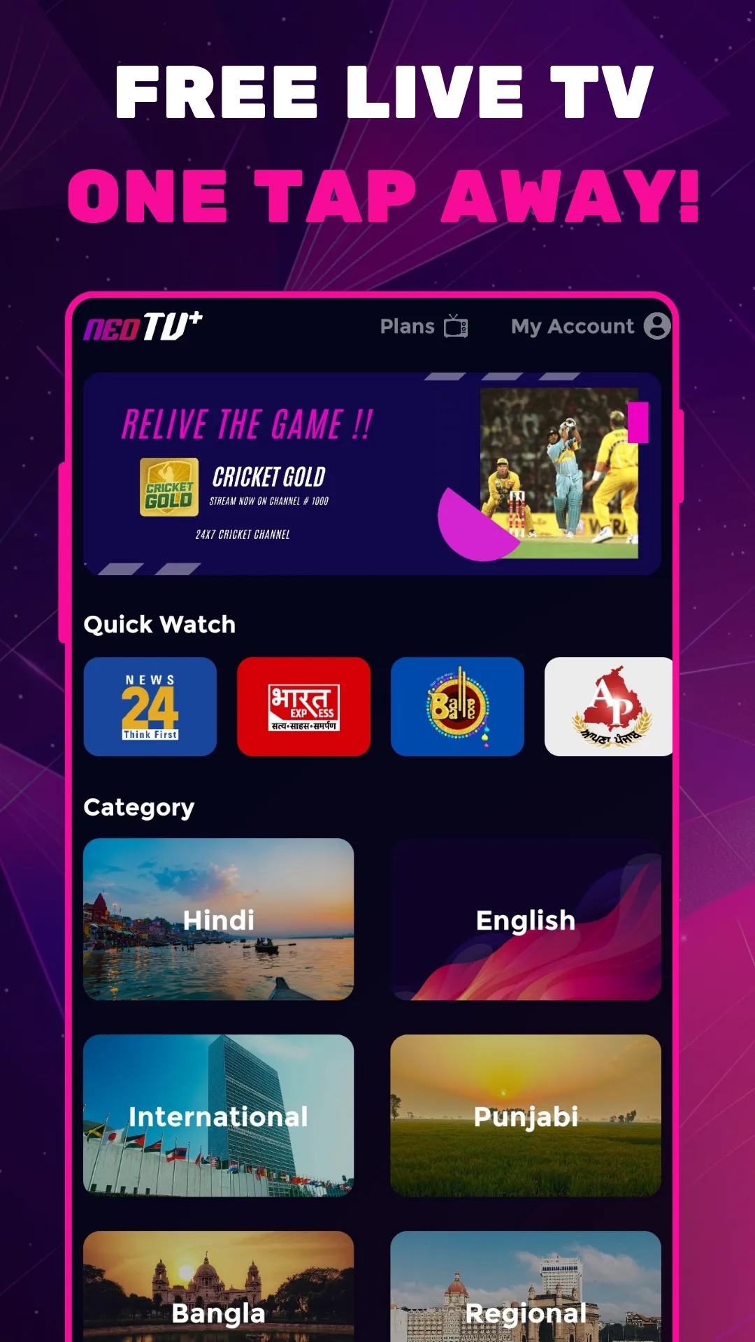 NEOTV+ is the ultimate Indian FAST TV (FREE AD SUPPORTED TV) app for Android devices, offering 100+ free, ad-supported live channels with no subscription required! Watch news, movies, sports, music, and kids’ entertainment anytime, anywhere. Available FREE on Android Mobile and Android TV. 📺 What You Get: 🎬 Movies & TV Shows – Enjoy thrilling movies and binge-worthy series. ✔ Live News Coverage – Stay informed with top channels like India News, NewsNation, NewsX and many more....