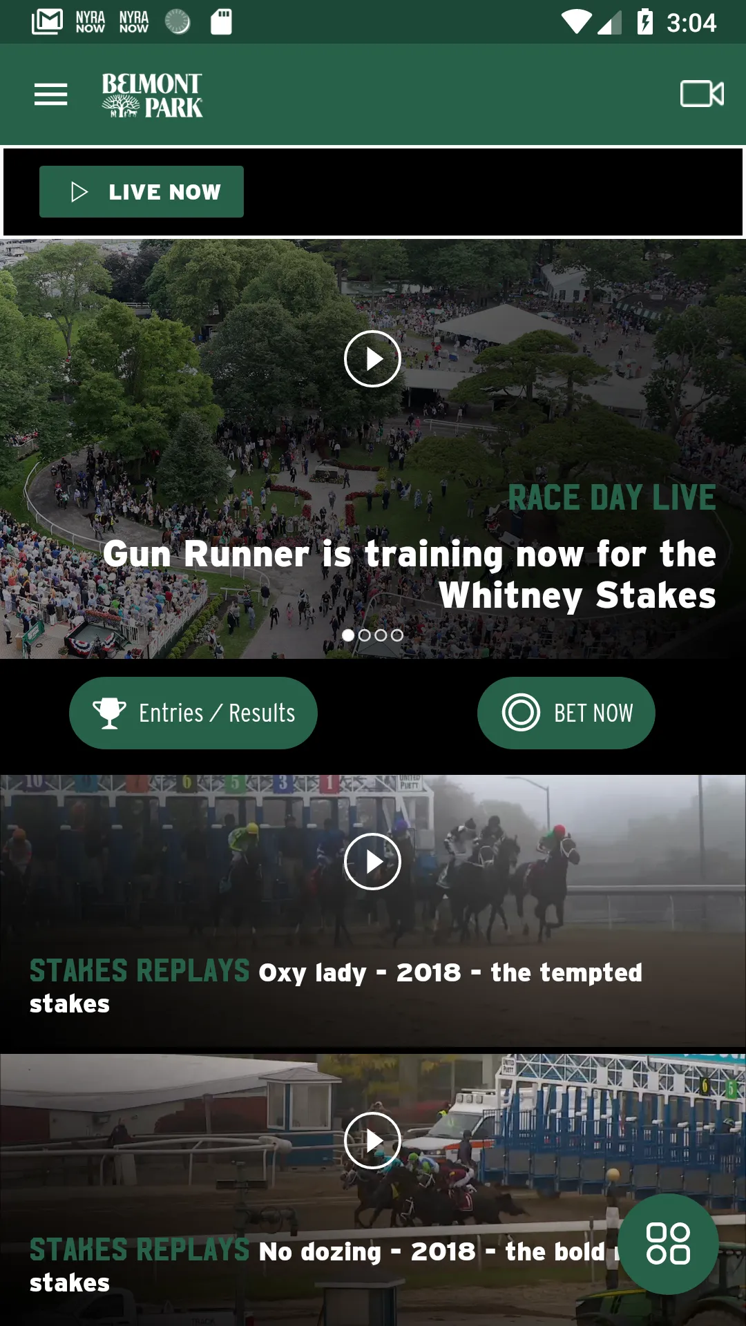 NYRA Now is the official video streaming application of The New York Racing Association, featuring Thoroughbred horse racing from NYRA Tracks, including Aqueduct Racetrack, Belmont Park, and Saratoga Race Course, and over 200 additional tracks from around the nation. NYRA Now gives NYRA Bets members the ability to watch racing from NYRA tracks live in HD from a multitude of camera angles, including the side-view camera, head-on camera, finish line camera, or stretch-view camera. Additionally, fans can watch the saddling paddock to catch all the pre-race action, or utilize the trackside cameras to watch morning workouts. Plus, the Simulcast Center enables fans to access simulcast content from anywhere. Stream race replays from tracks across the nation, look ahead to feature races and access entries and results. NYRA Now also offers users a variety of on demand content, including historical pieces and replays of the popular Talking Horses daily handicapping analysis show. ...