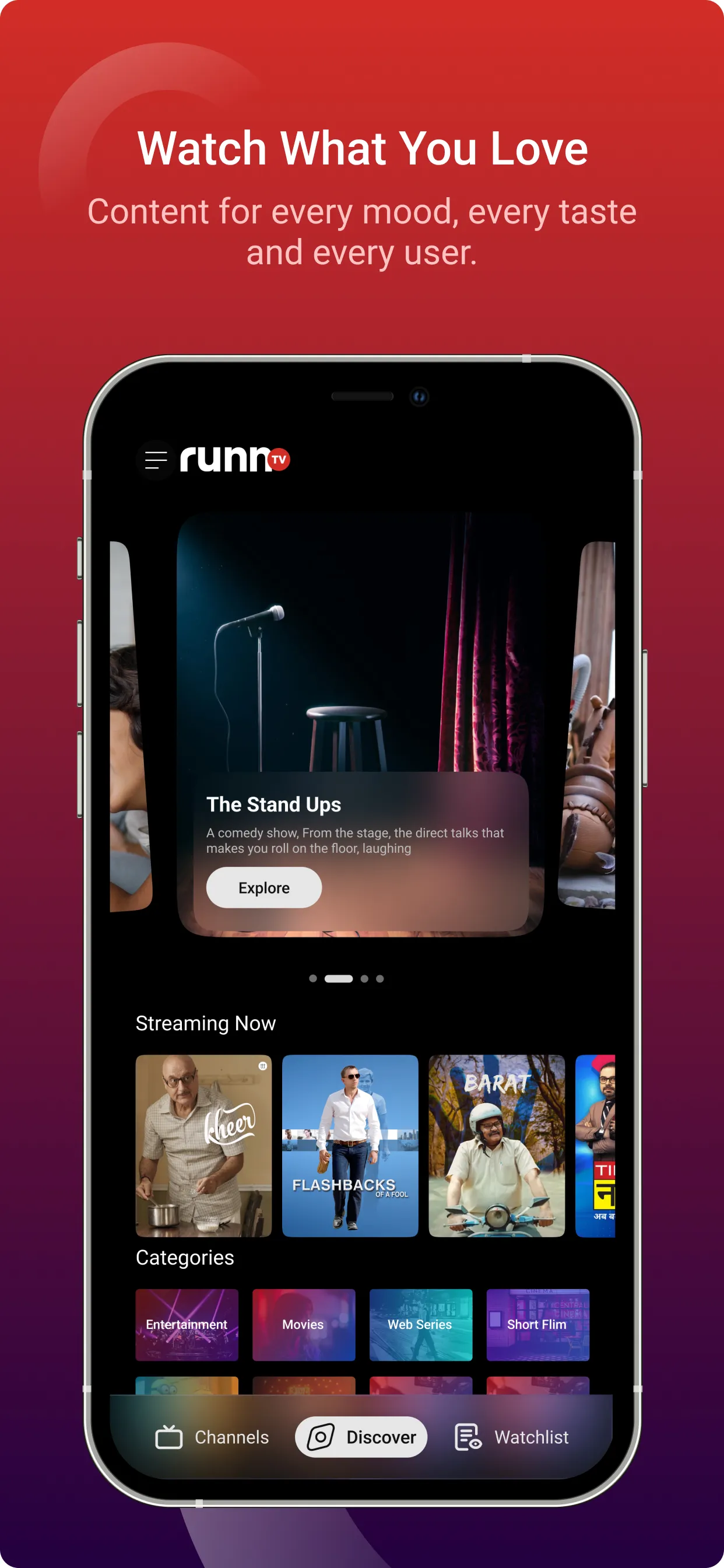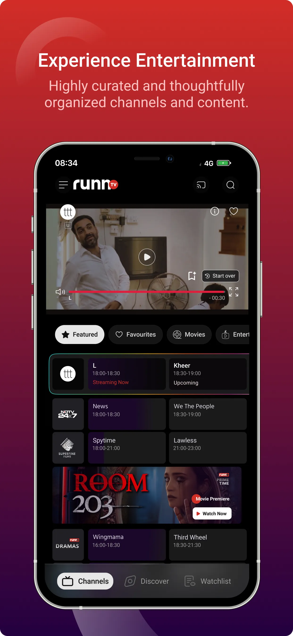 Experience Entertainment with RunnTV with 24x7 thematic channels running highly curated content across categories including movies, short films, music, shows, stand up comedy, news, kids, and much more. And what's more? It's completely free! Here's what you will love about RunnTV: • Carefully curated titles to give you the best of content across categories, genres and languages. • Unique thematic channels that gives you the entertainment you want, your way, with one-tap-playback experience. • Super easy navigation and discovery that maximize your watch time and minimize the need for search and browsing....