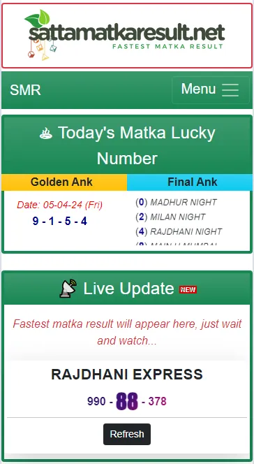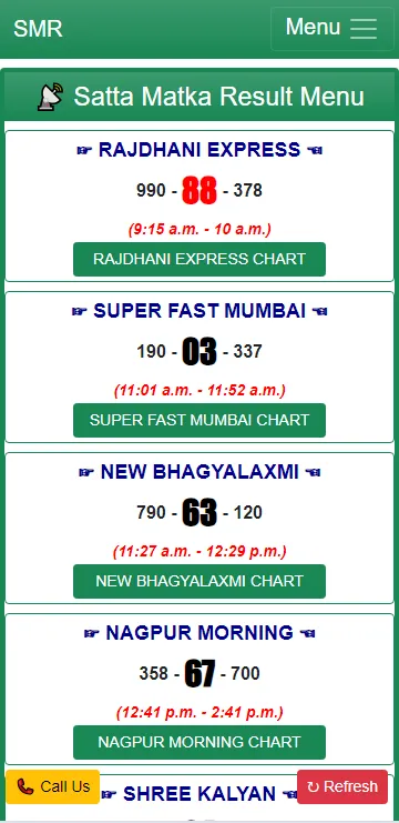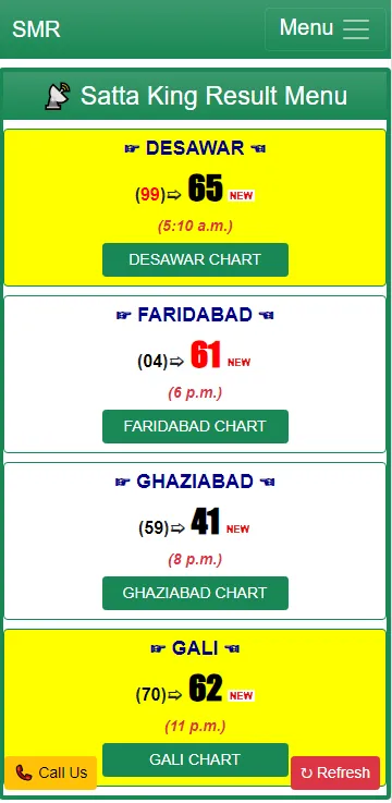 Welcome To The World Of SATTA MATKA RESULT {S M R} Group, Here You Get Latest Information About Satta Matka Guessing, Satta Matka Kalyan And Much More. Today We Have Seen That Peoples Are In Search Of Kalyan Matka Result And Matka Results Today So We Are Here To Provide You Results As Fast As Possible. Also Peoples Make Guessing Of Many Lottery Games On The Basis Of Charts Like Mumbai Matka Chart And Kalyan Matka Chart. SATTA MATKA RESULT:- Provides You Latest Satta Result, Today's Matka Result,...