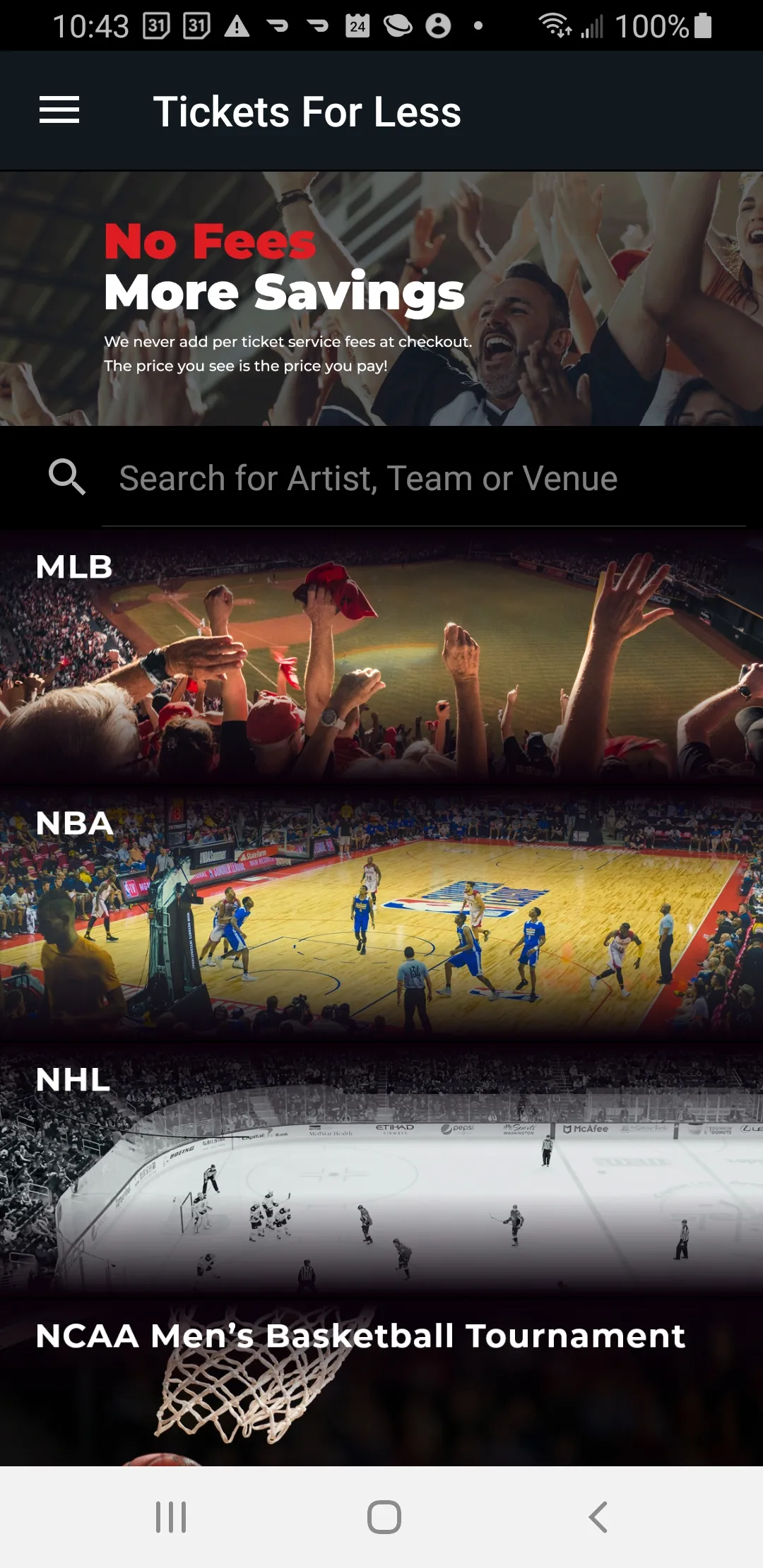 Best seats, best prices. No per-ticket service fees – That’s what you can expect every time you shop for your tickets at Tickets For Less and the Tickets For Less app. Secure your seats to all the best events, including sports, concerts, and theater in one convenient location. Plus, with our transparent pricing, the price you see is always the price you pay. Tickets For Less also provides unrivaled customer service. From shopping to purchasing to attending your event, we are with you every step of the way. Our customer service team is always available to answer your questions and ensure you make it to your event. MORE APP FEATURES: Electronic ticket delivery (when applicable) Quick & easy checkout...