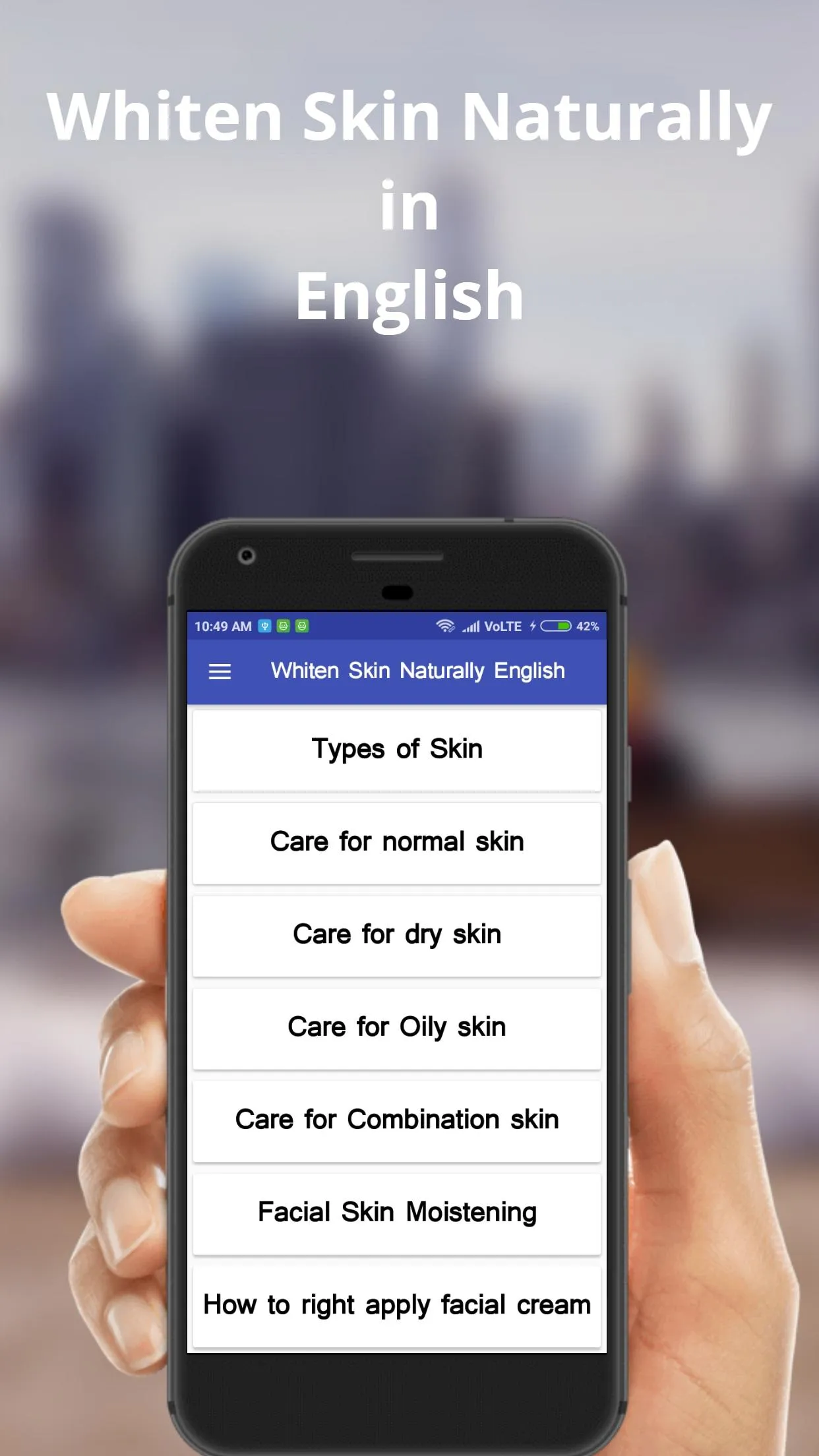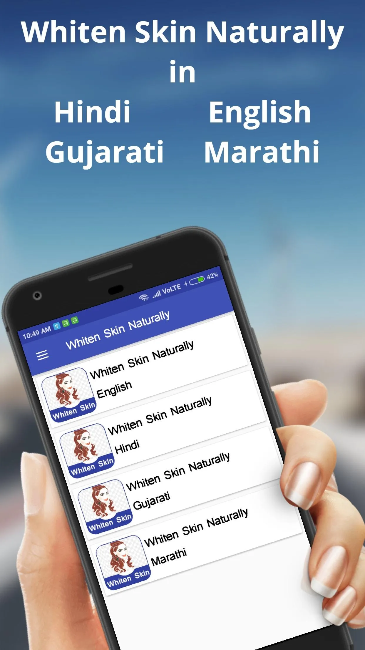 This app is a collection of various tips to stay young, beautiful, fair and lovely. These are completely natural and well proven tips, which are usually suggested by old ladies, dadi, Nani and Grandmother. This helps you get fair complexion in natural way. This application is based on Ayurvedic and Home Remedies popularly known as ayurvdic and gharelu nuskhe or dadi maa ke nukskhe. Whiten Skin Naturally App collections of Categories are below and provide all this Topic Like, Whiten Skin Naturally in English...