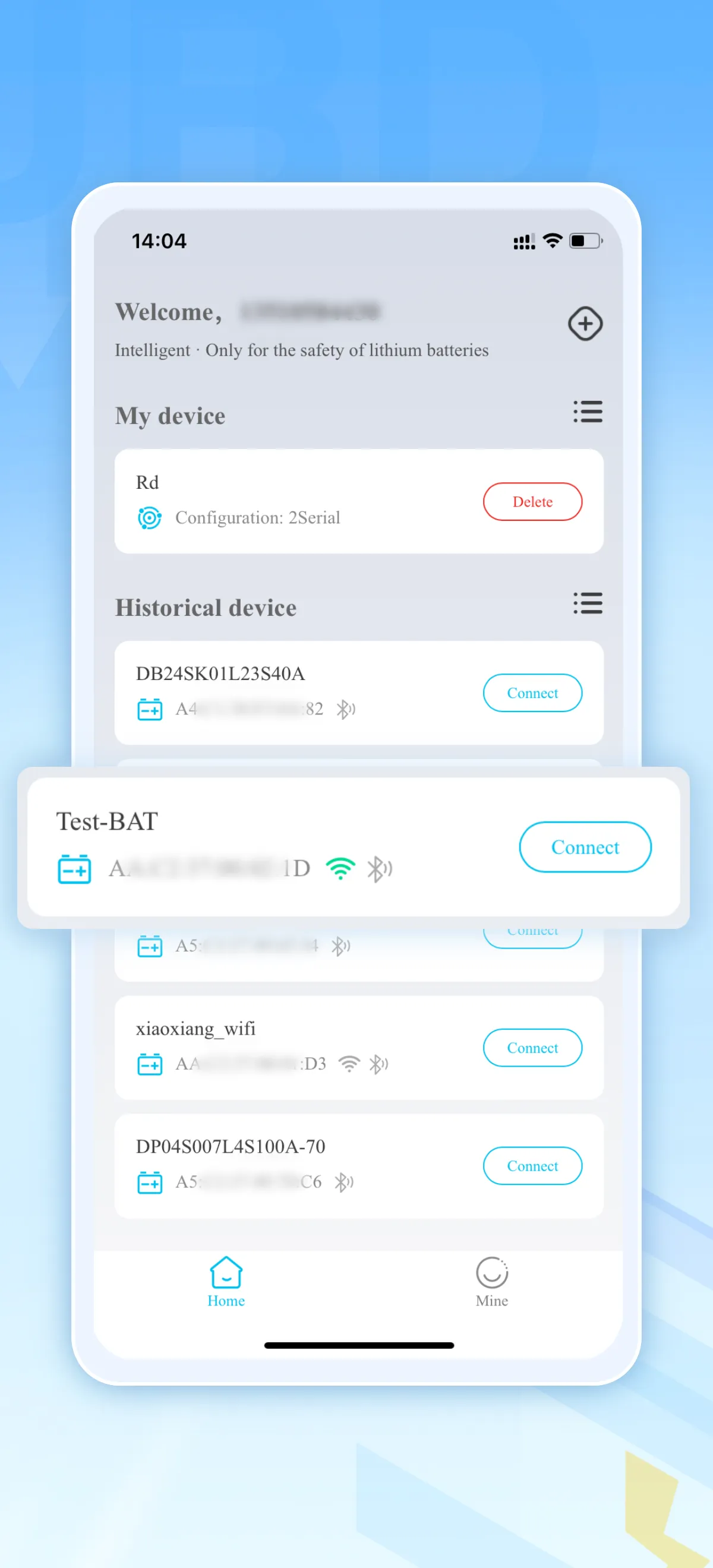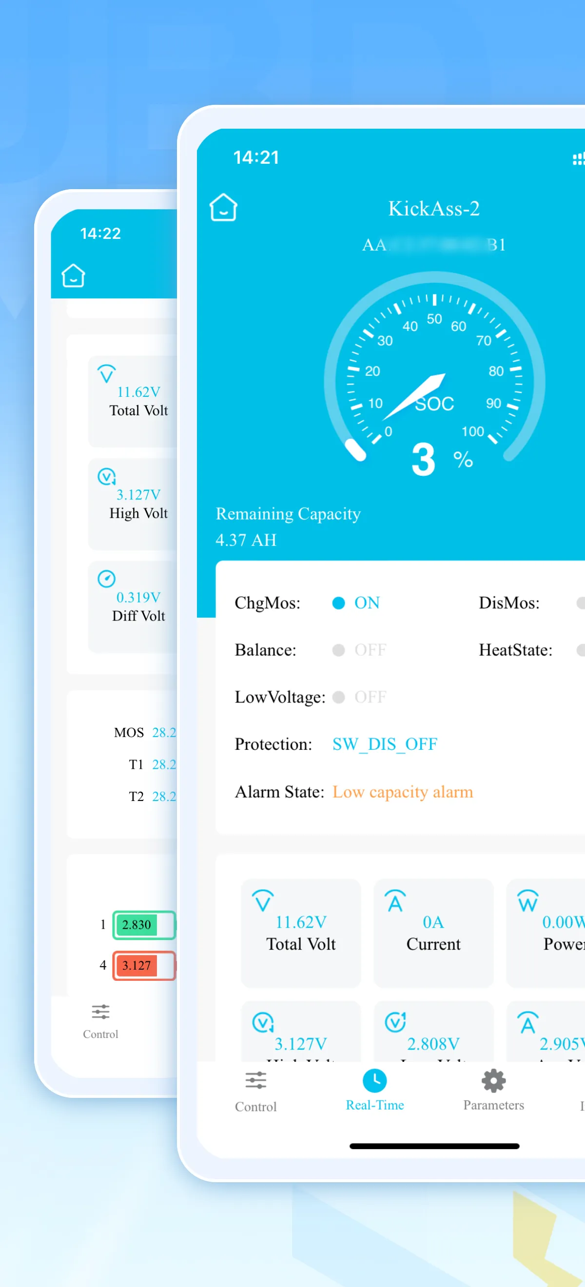 JBD Li-ion is a lithium battery-specific APP independently developed by Dongguan Jiabaida Electronic Technology Co., Ltd. It is designed specifically for lithium battery protection boards and can set a series of operations such as battery charge and discharge switches. On the device list page of the APP, you can view and select the device to be connected. After a successful connection, you will jump to the device panel page, where you can view the battery capacity, battery voltage and current and other parameters. The control tab page can control the battery charge and discharge switch, and the parameter page can view the battery name, manufacturer and other information. 【Home】 Display historical connected devices, add new devices via Bluetooth or scan QR code ...