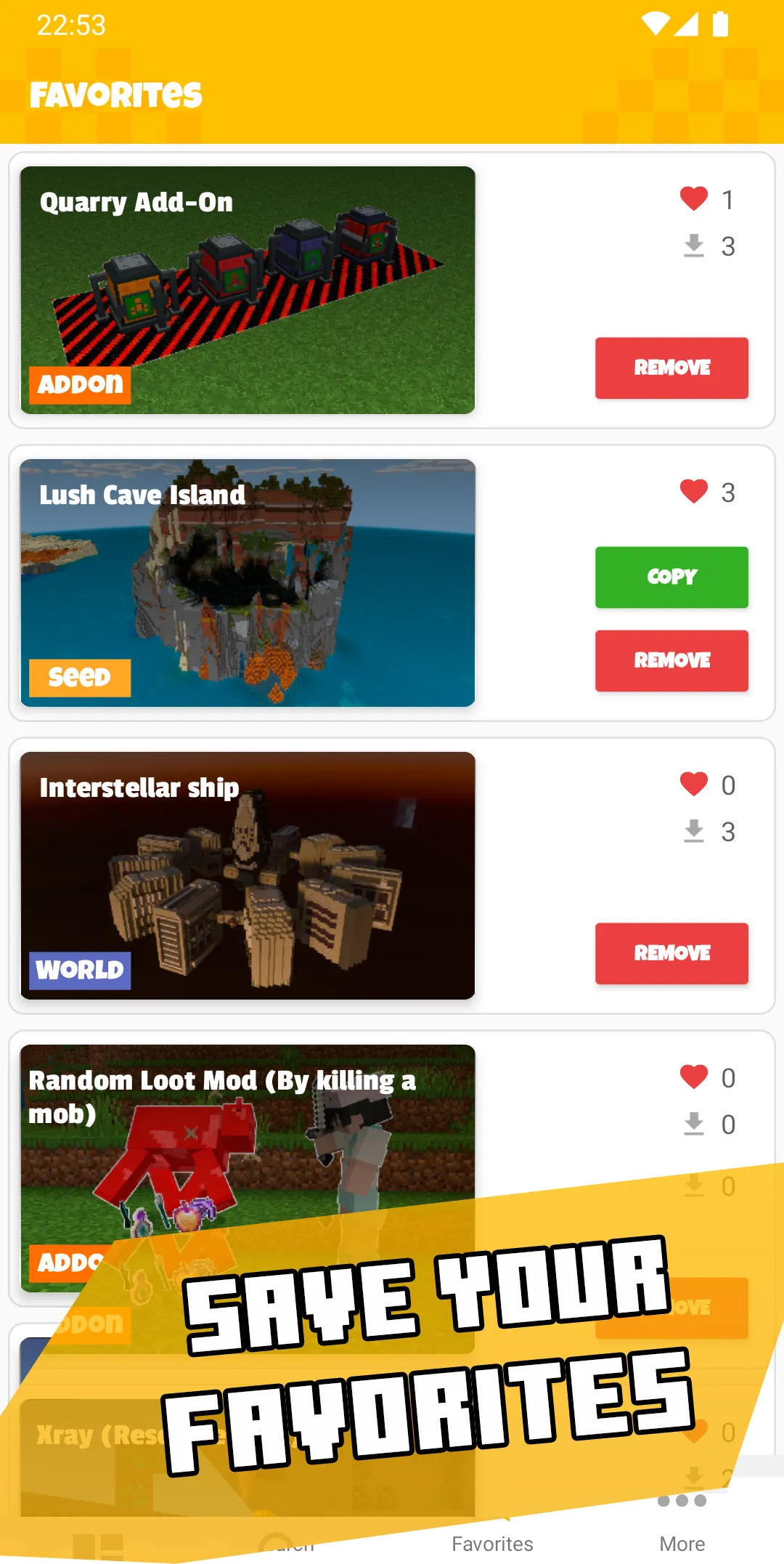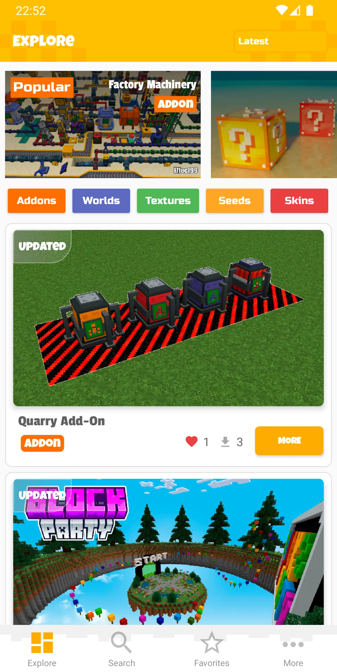 Discover the best Minecraft addons, along with maps, textures, mods, seeds, and skins you can easily install. All addons and other content have been tested to ensure they work correctly. In this app, you'll find unique and fascinating addons that can completely transform your Minecraft experience. New addons are added regularly, and existing addons are constantly updated. Explore amazing addons for Minecraft that introduce new mobs, blocks, special abilities, and unique gameplay mechanics. You'll also find custom worlds with minigames, stunning builds, and much more community-created content. Customize your world even further with colorful and appealing texture packs. Discover incredible seeds and find the best skins and skin packs to personalize your character. ...