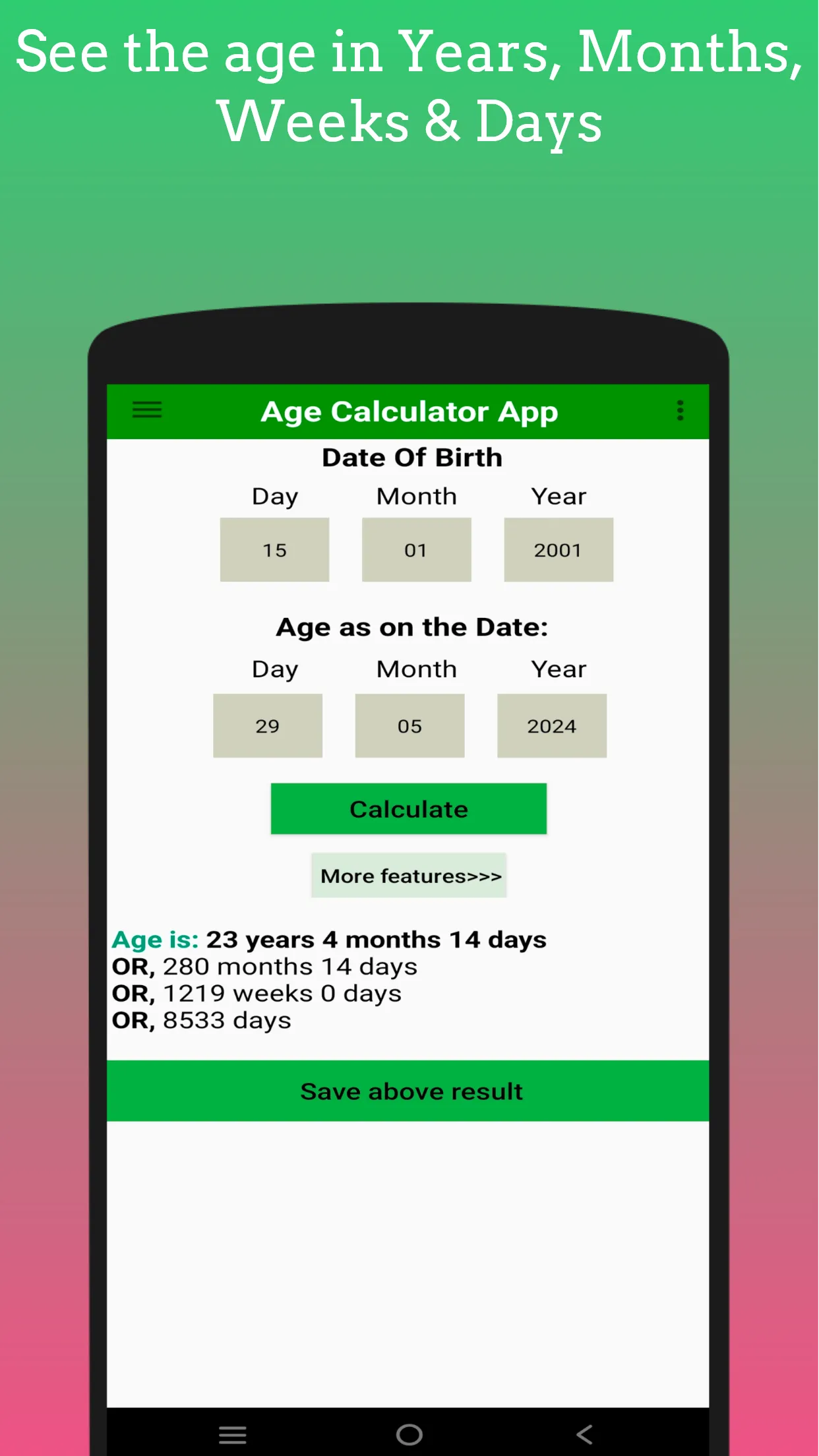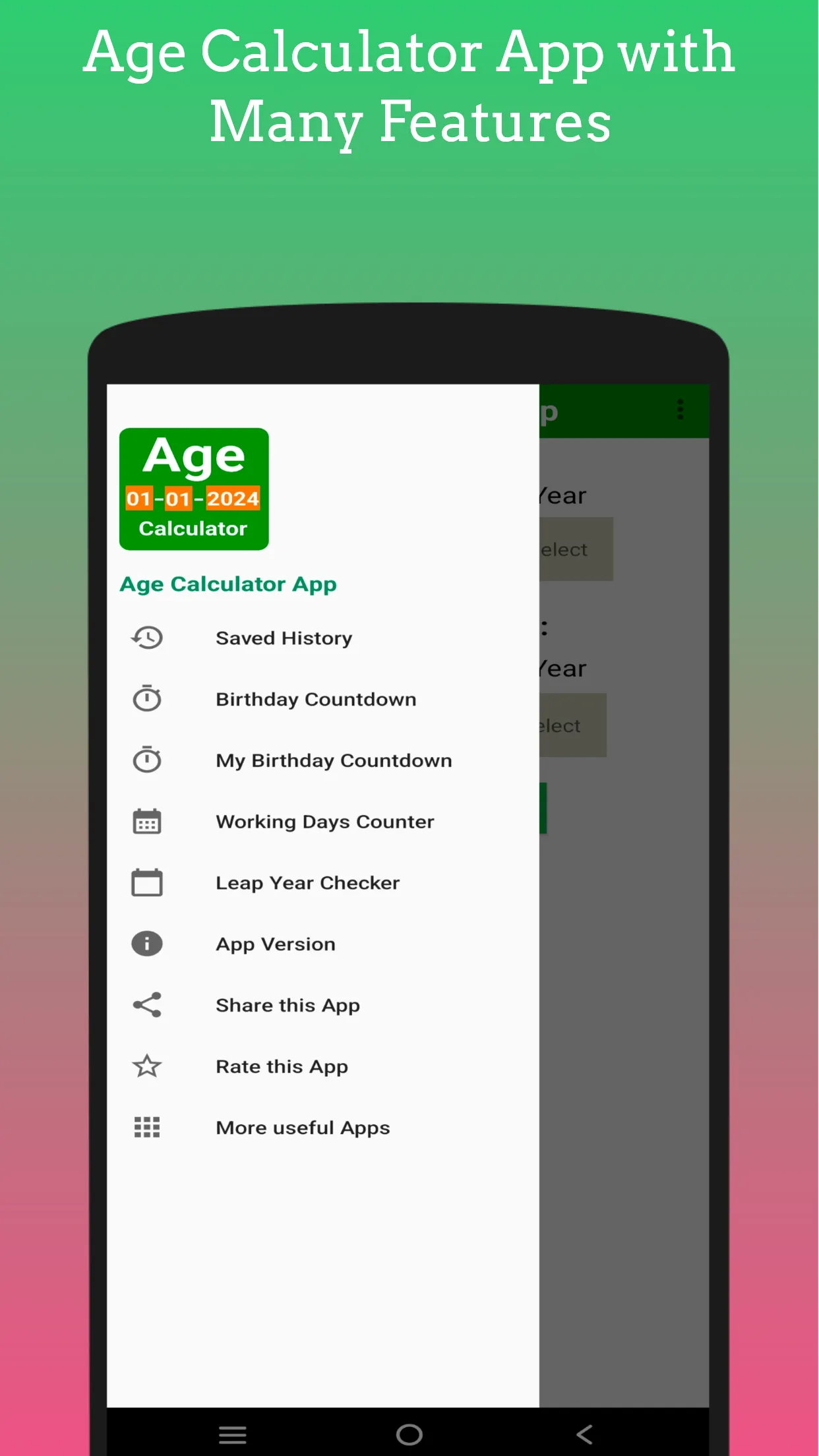 Age Calculator App: Calculate your age and important milestones effortlessly with Age Calculator App. Simply input your DOB and let the app do the rest. Discover your exact age, upcoming birthdays, and more in seconds." ~"Age Calculator App is your ultimate tool for effortlessly determining your age and tracking important milestones. Whether you're curious about your exact age, upcoming birthdays, or the age difference between you and your loved ones, this app has you covered. ...