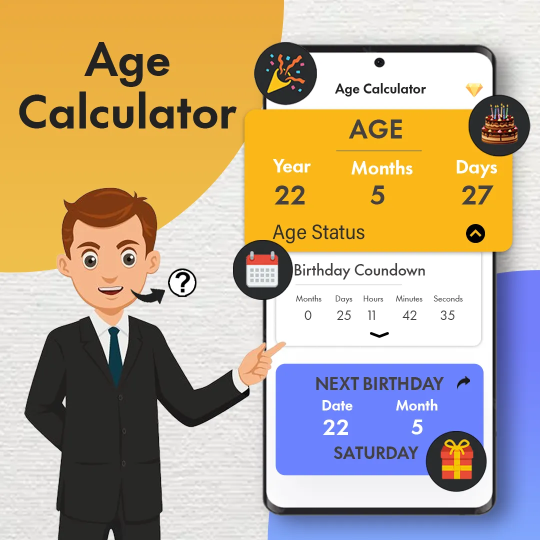 Welcome to the world of heartfelt celebrations and never-missed birthdays with the age calculator by date of birth & age calculator! In this fast-paced life, it's easy to lose track of important dates and special occasions. However, we believe that every birthday is a moment worth celebrating with full enthusiasm and joy. Whether you're keeping tabs on your loved ones' birthdays or need a handy tool like our age calculator by date of birth to calculate baby ages or the age difference between two individuals, our versatile app has got you covered. Dive into a world where birthdays are cherished, and celebrations are effortless. Key Features: Birthday Notifications with age calculator: Say goodbye to the stress of forgetting birthdays! With our user-friendly Birthday Reminder app, you can effortlessly input the birthdays of your friends, family members, and loved ones. The app then works its magic, sending you timely reminders well in advance so that you can plan the perfect celebration. Never miss another birthday party or special day again! ...