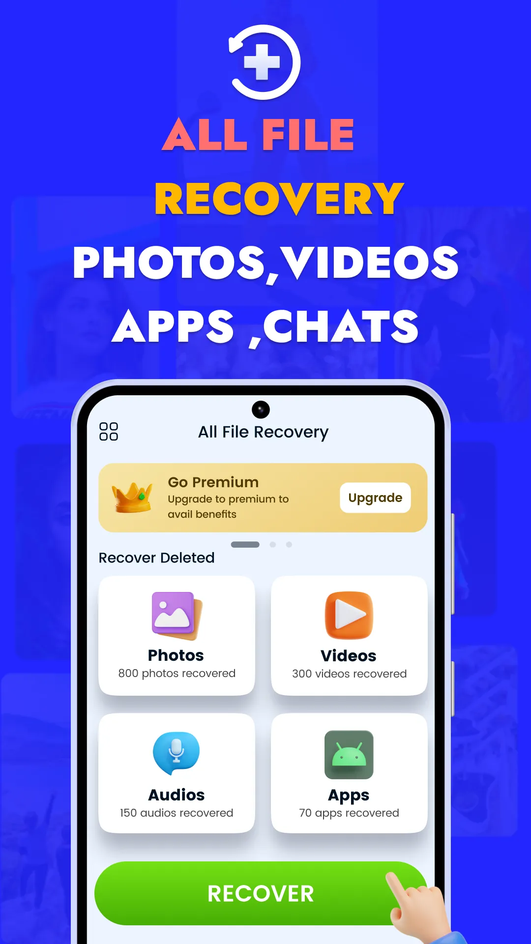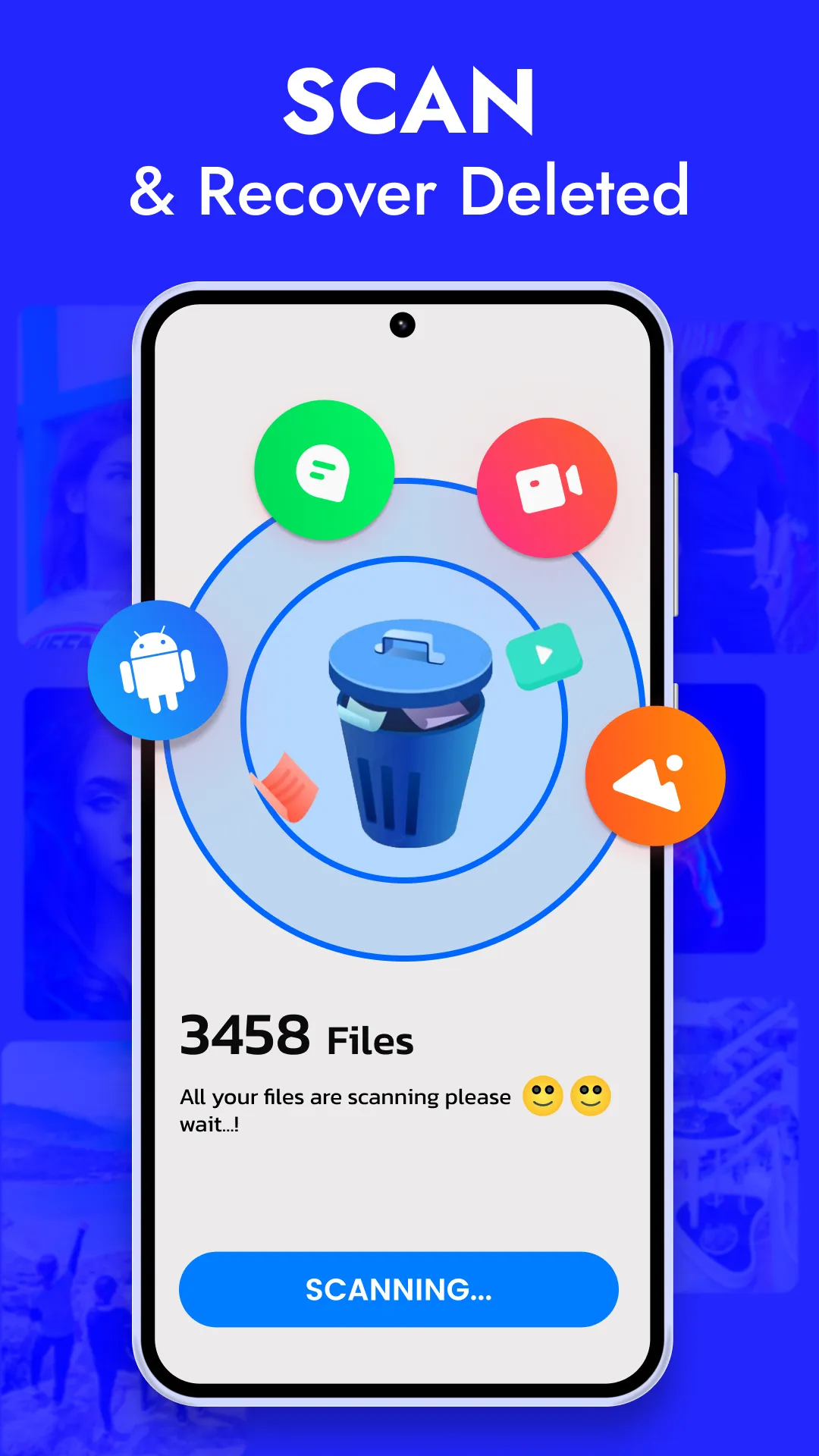 Deleted WA messages Recovery, App recovery & Audio/ Video/ Photo Recovery App. Have you accidentally deleted your precious photos/ videos or other data from your phone? It can be frustrating, but don't worry - our All in one recovery: App recovery, Video/Photo Recovery app is here to help! Whether it’s photos, videos, audio, apps, or recover deleted messages, our advanced recovery solution ensures you can restore them easily, quickly, and without any hassle. We make sure no memory is lost forever! ...