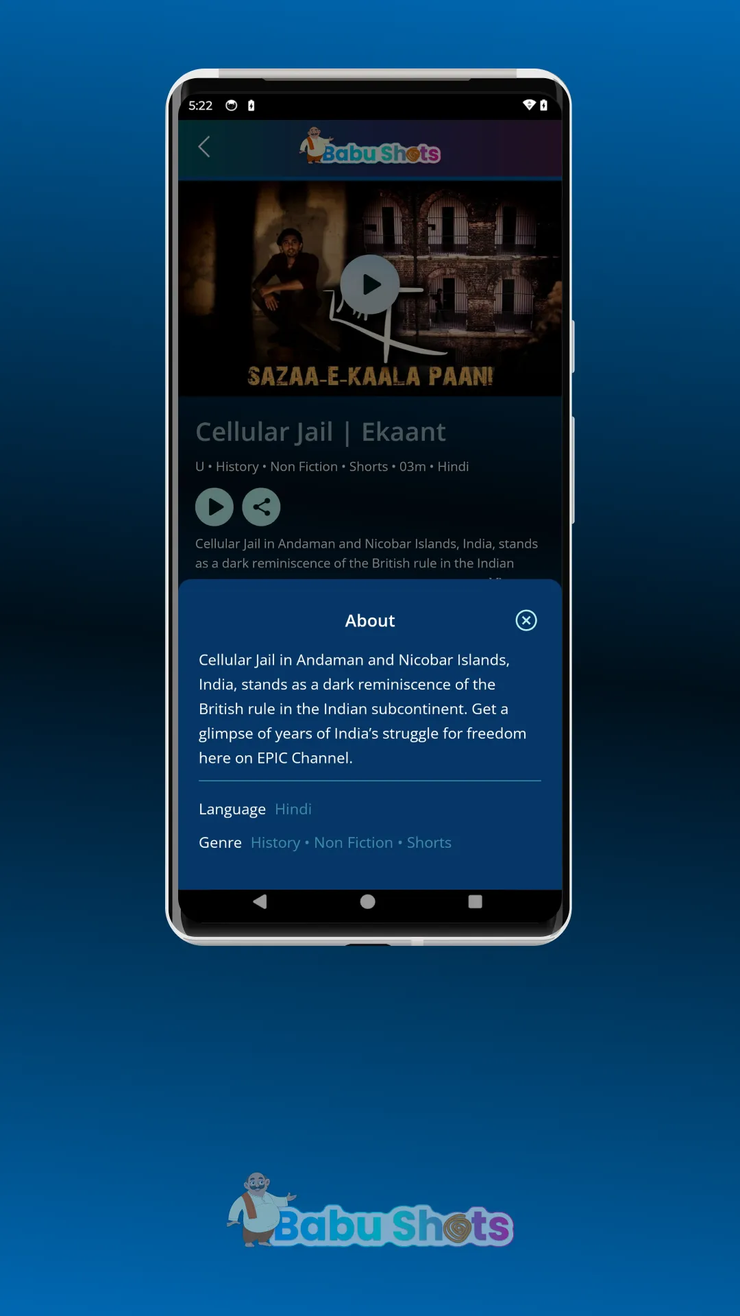 Welcome to Babushots, your gateway to premium short-format video entertainment. Designed for the mobile-first generation, Babushots offers a dynamic and intuitive platform where creativity meets instant engagement. Whether you're looking to stay informed, discover emerging creators, or simply unwind with compelling stories in under five minutes, Babushots delivers a curated experience tailored to your mood, interests, and time. Key Features: High-impact videos across genres—news, entertainment, lifestyle, and more....