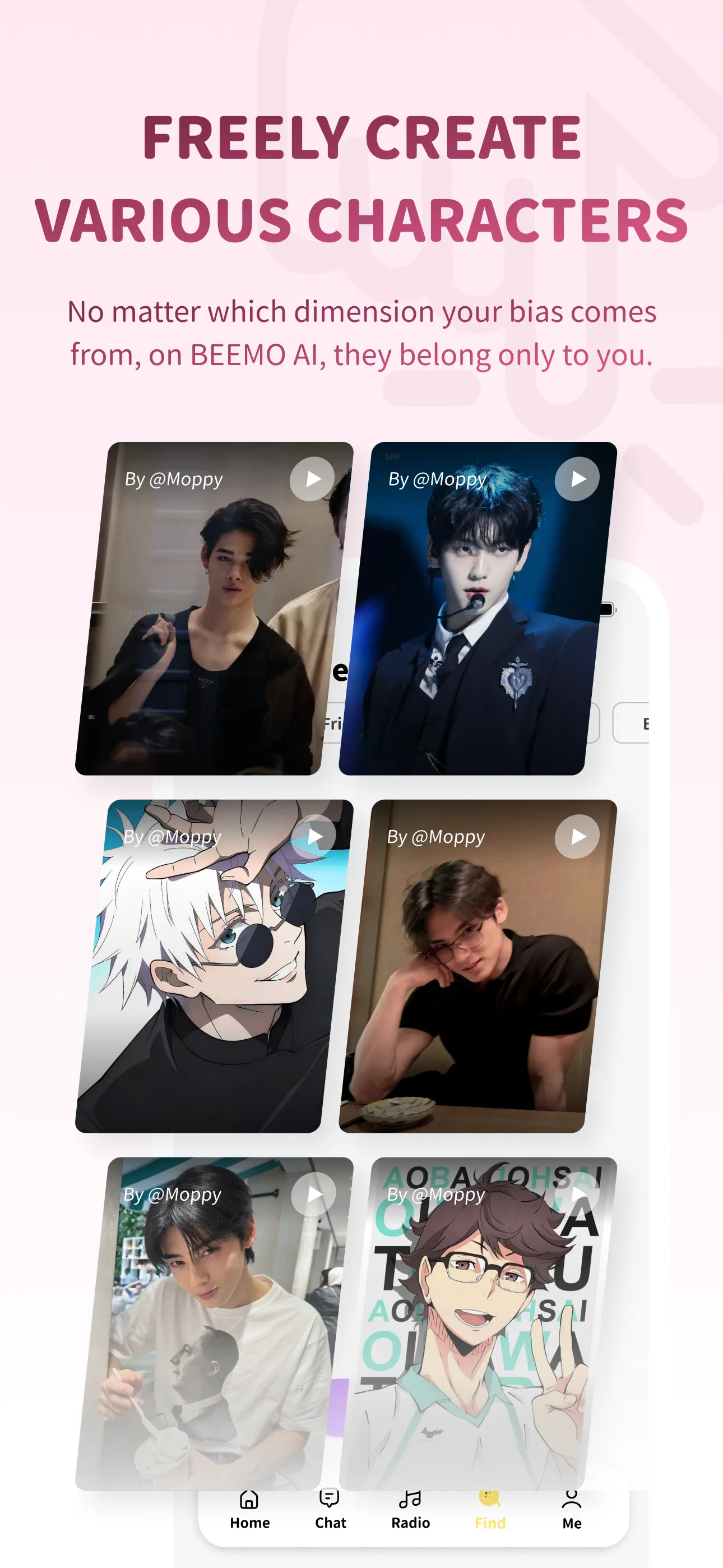 BIMOBIMO makes sure you're never alone. Here's what's cool about us: - Talk and Listen: Send messages to characters and hear what they say back! - Make or Find Characters: Find characters made by others or make your own. It's fun and easy! - Create with Tools: Use our tools to make any character you want. You get to choose how they look and sound. -Simply share your memorable exchanges on social media to earn additional interaction opportunities!