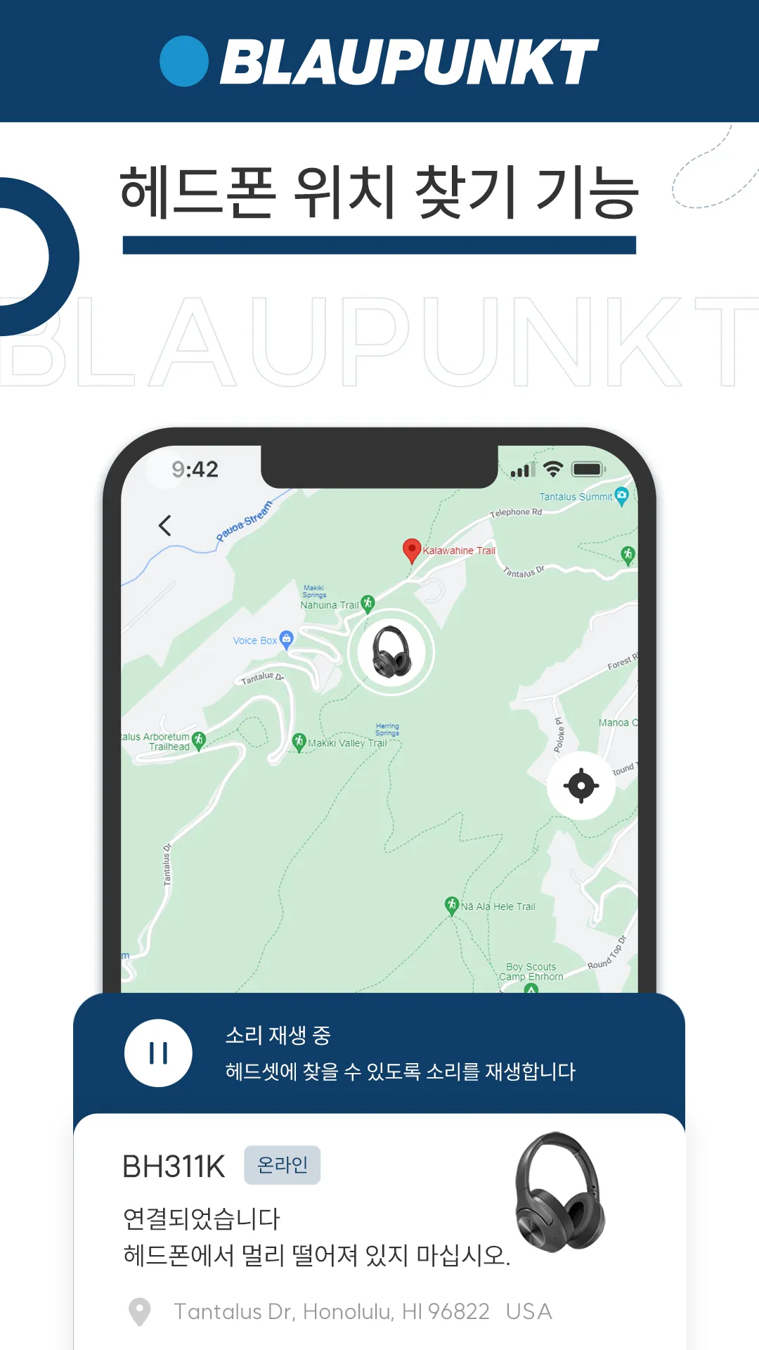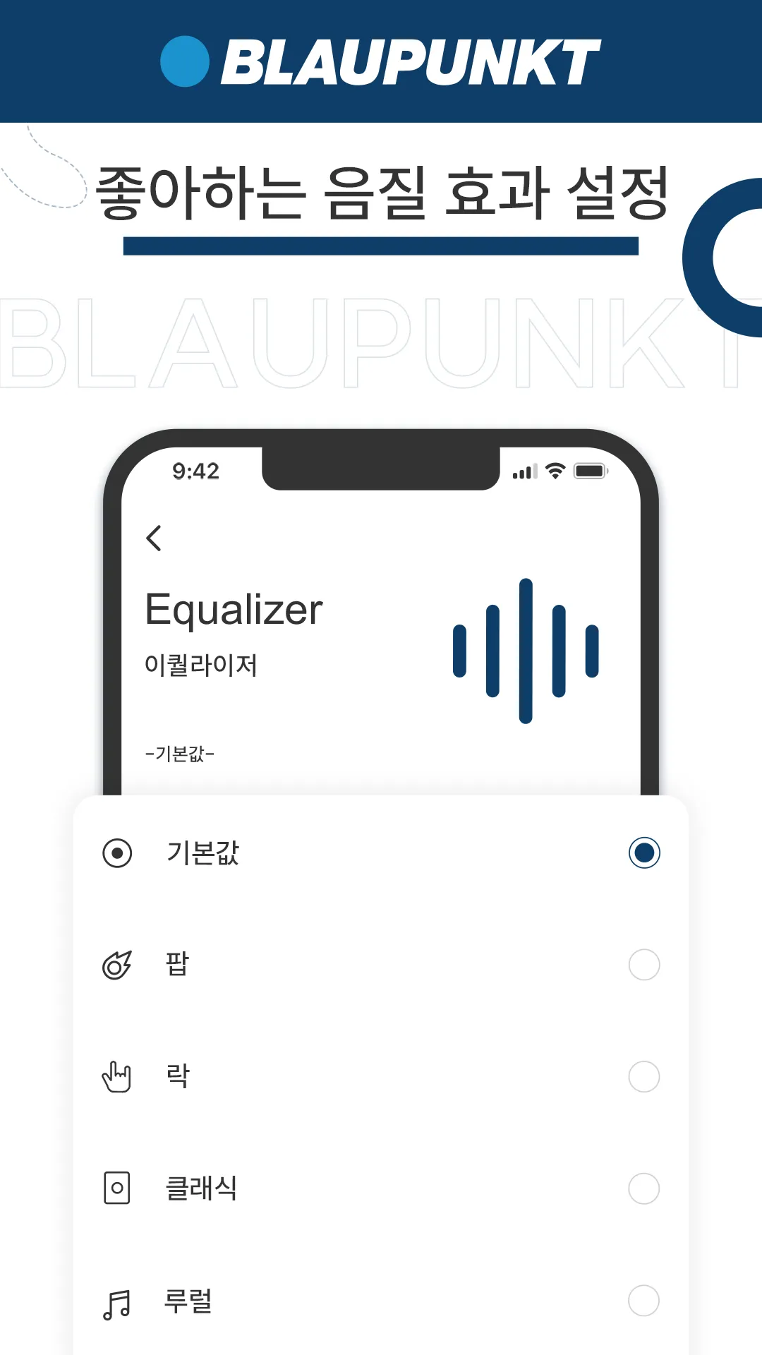 Blaupunkt App is designed for you to adjust the EQ through your phone. The app supports complete operation functions, including: 1. Simple And Easy Setup Process 2. Check Battery Of Your Headset At Any Time 3. Adjust EQ From Blaupunkt APP 4. Change The Name Of The Headset 5. Search The Headset Location When You Can Not Find It