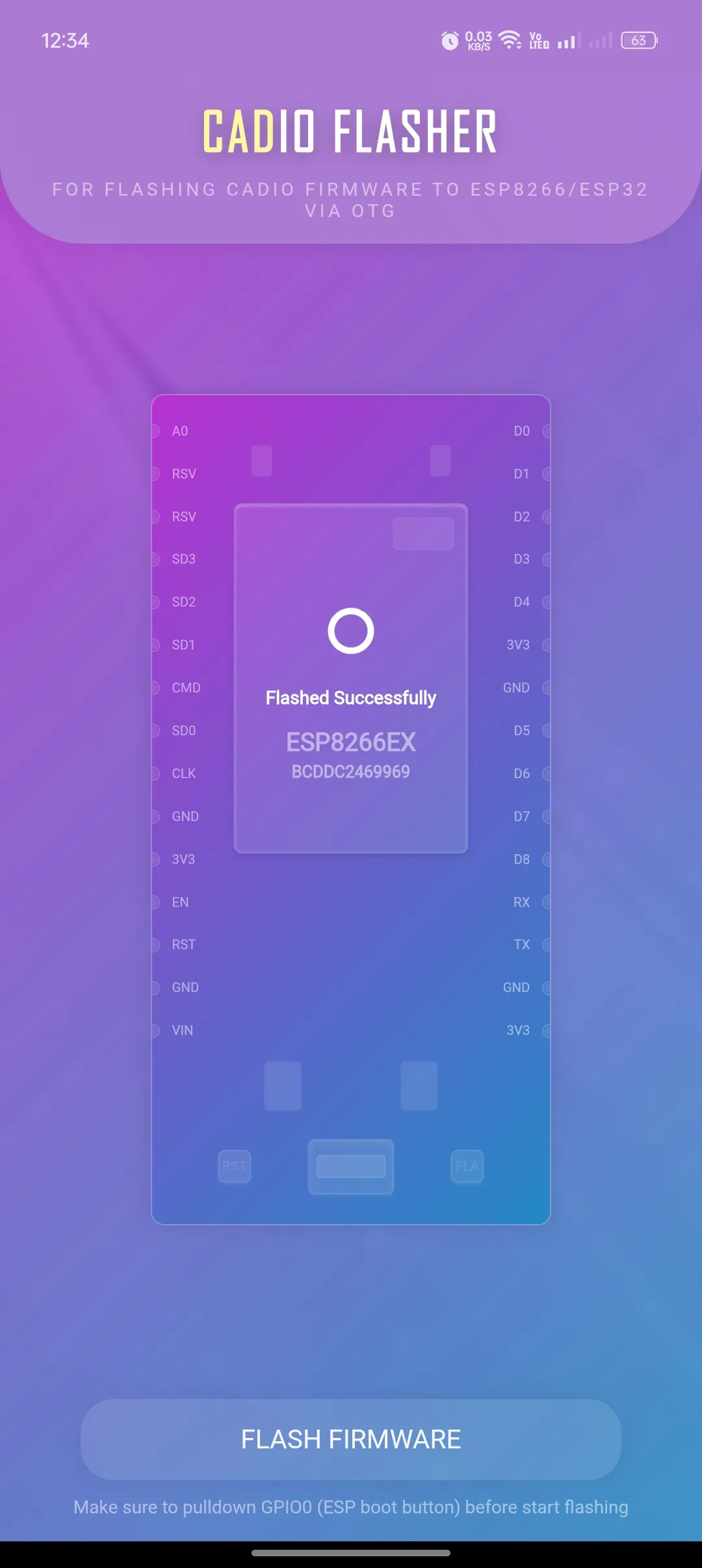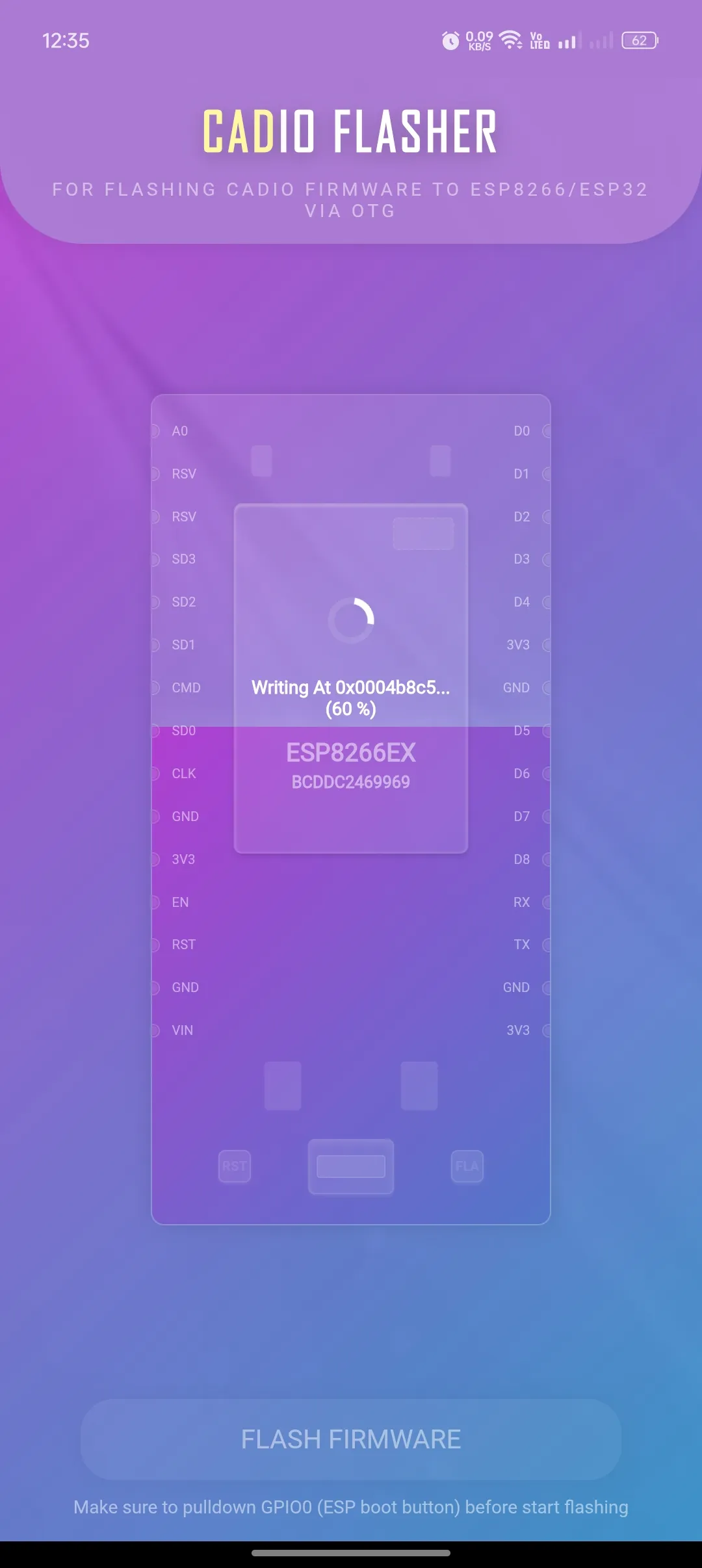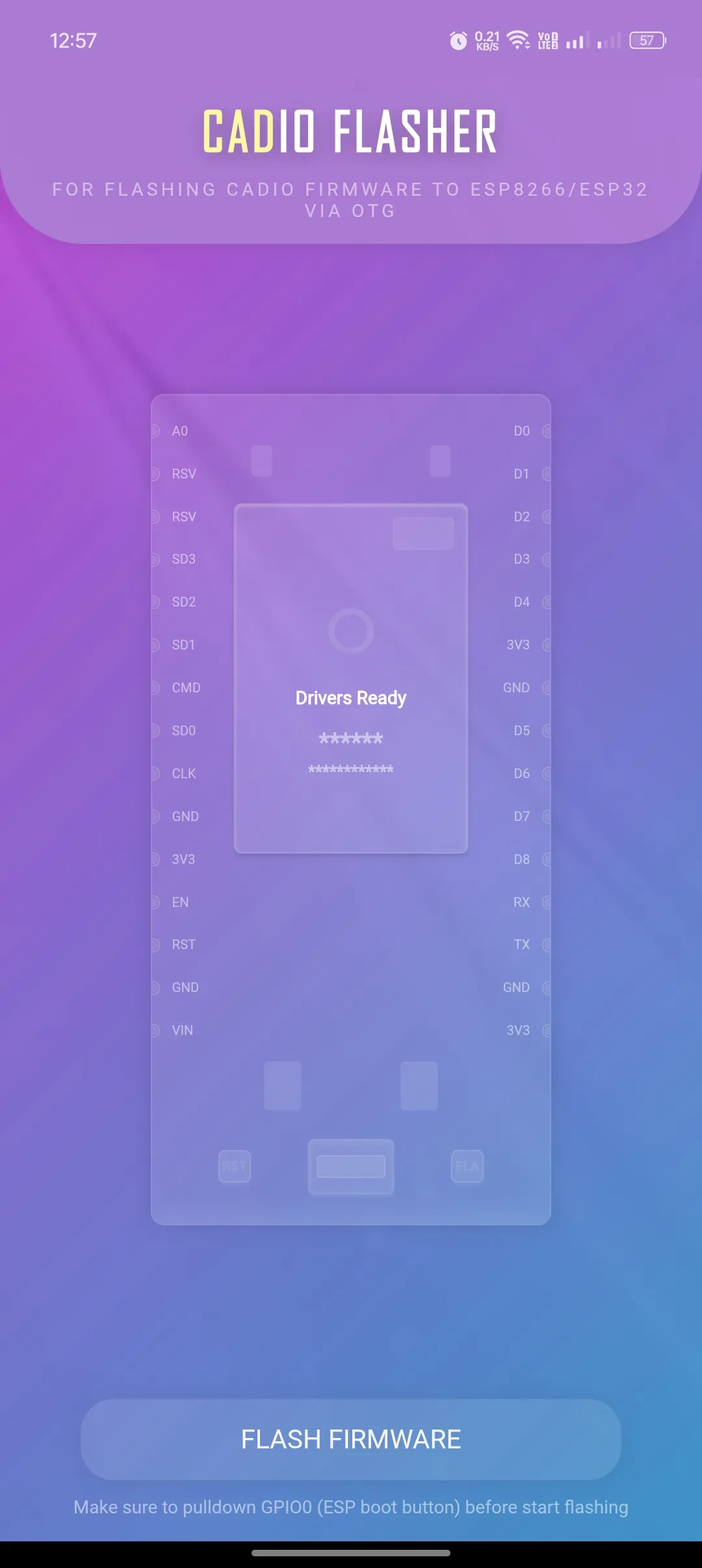 Automated tool for Flashing CADIO firmware to ESP8266/ESP32 devices directly from your Android phone via OTG. This app enables you to flash CADIO firmware onto ESP8266 and ESP32 boards using just your Android device and an OTG cable, eliminating the need for a PC. Supported chips: - ESP8266...