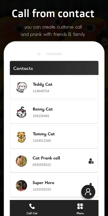 Cat call you prank is all for the cat Lovers and people with love kitten pets Schedule a fake call. Cat fake video call Cat Video call Game prank video call is not real it's only for entertainment for friend.Talking to cute cat video call is now easier than ever to love cat video call message. cat video call talking real number prank is a Calling Prank help you to select a caller from your contacts list or enter a new contact wrestling. Cat Call you is so much fun. Cat calling prank allows you to schedule random video calls from cats and you can schedule call timing of cat video call and play with your cat fake call game. We have provided fake videos of cats which you can set in video call and you can also add new contact prabk video call. Customize fake caller name, number, picture, and video. Your love ones will be the happiest ever when they get cat noir video call number that surprise call from tom cat video call himself and cat video call message. Cat Video Call also have Cool Cat Wallpapers to set on the screen enjoy different Cat Wallpapers and make your device screen more attractive and cute. simulate fake incoming call from cat.Naughty Cats Calling Prank,With this prank you can simulate fake video calls from random Naughty Cats. We made this application for people who are big fan of cats and love them. Your love ones will be the happiest ever when they get cat noir video call number that surprise call from tom cat video call himself and cat video call message. and also your make fake video call with your own video or any other video like celebrity, superhero, superstar, politics, and friend or family video, you create with girls fake video call, and also create make girl friend video call, etc. and in this provide live wallpaper is the extra function for you. you download hd wallpaper in many category are there. Cat live wallpaper and animal live hd wallpaper and cat hd wallpaper. And this app provide next other extra function Ringtone and music.fake video calling famous people. Get your own video call cat boy karne wali game, embrace the spirit and enjoy your holidays with video call cat 2 fake video call g you.In other words, you can make fake video call with cute cat. Recoder Video Call with cute cat video calling game and share with friend and family. Cute Cat Video Call prank app is completely free and very easy to use Simulate fake video and fake caller id. Cat real number prank is a Calling Prank help you to select a caller from your contacts list or enter a new contact wrestling . Capture your kid’s reaction to Cat while watching their personalized video on your phone & get a video that you can download and enjoy as a keepsake and a cherished Wall memory for years to come with friend and family.Cat video call prank and Cat video call chatting! and in this provide live wallpaper is the extra function for you. you download hd wallpaper in many category are there. Cat & Animal live wallpaper and All in One live hd wallpaper and hd wallpaper. Talking to Real cat is now easier than ever to Cat video call message. And this app provide next other extra function Ringtone and music. in this provide chritsmas ringtobe, xmass ringtone and Cat ringtone. Ho ho ho ! Make your children happy and amazed by allowing them to call to Cat voicemail from Cat video call phone! where is Cat ? cat video call chatting is a new, new addition to the collection of My Talking Friends games for kids! Get your own cat video call karne wali game, embrace the cat spirit and enjoy your holidays with video call cat you. and also your make fake video call with your own video or any other video like celebrity, superhero, superstar....