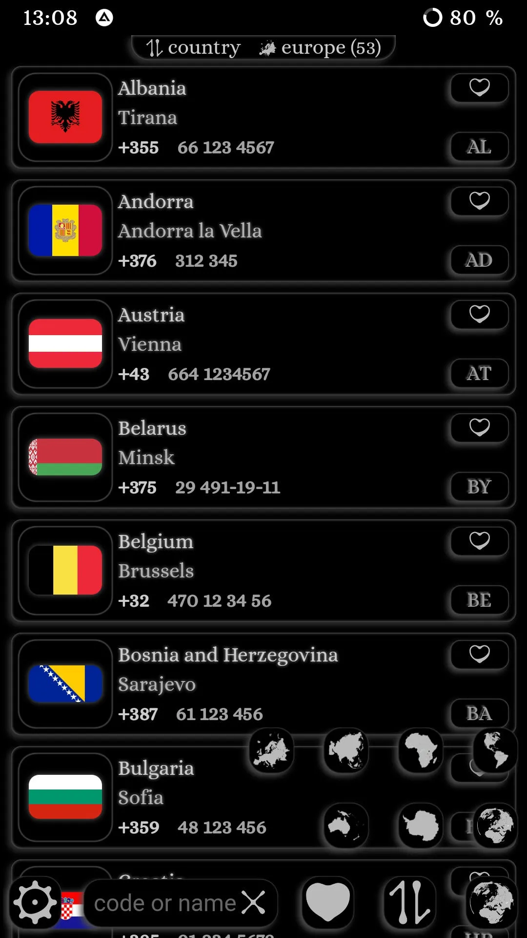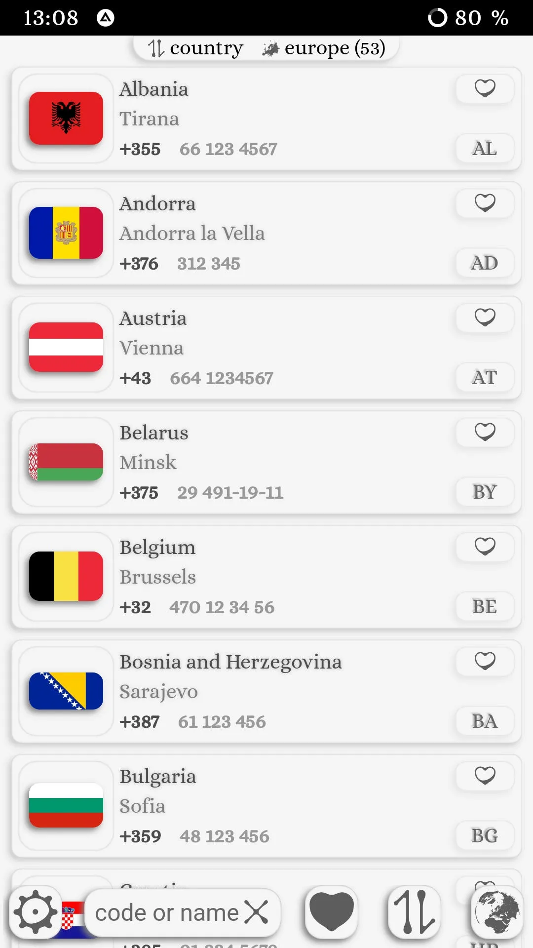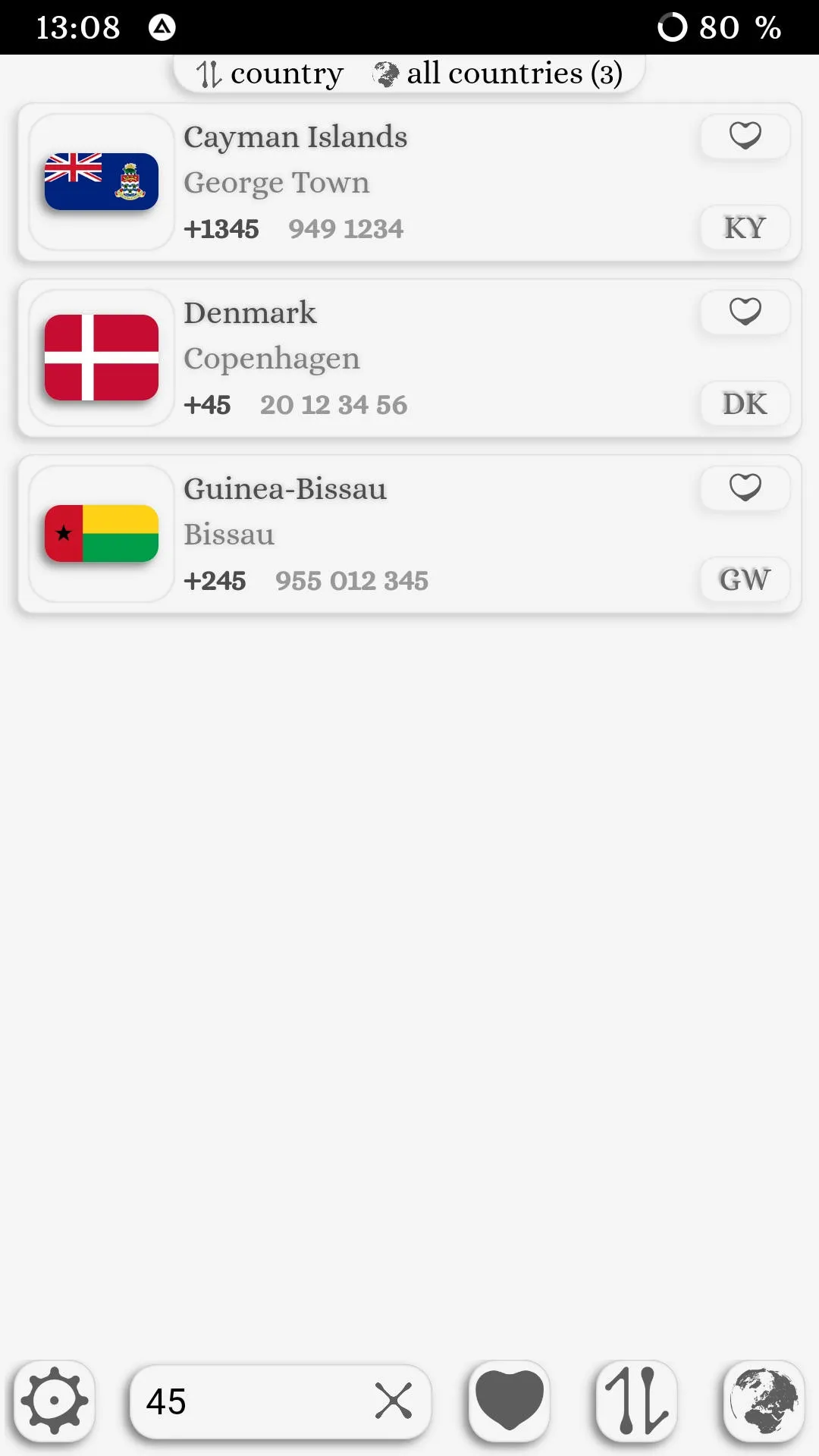 You can find out the international dialing country code with an example number. Settings: - scale - background - language (Russian, English, Spanish, German, French, Polish, Portuguese, Arabic, Malay, Ukrainian, Belarusian, Turkish, Japanese, Chinese, Dutch, Indonesian, Italian, Korean, Persian, Urdu, Czech, Swedish, Norwegian, Lithuanian , Catalan, Finnish, Galician, Serbian, Vietnamese, Bulgarian, Thai, Georgian, Greek, Afrikaans, Hebrew, Tamil, Romanian, Croatian, Latvian, Hungarian, Bosnian, Armenian, Marathi, Yoruba, Hindi)...