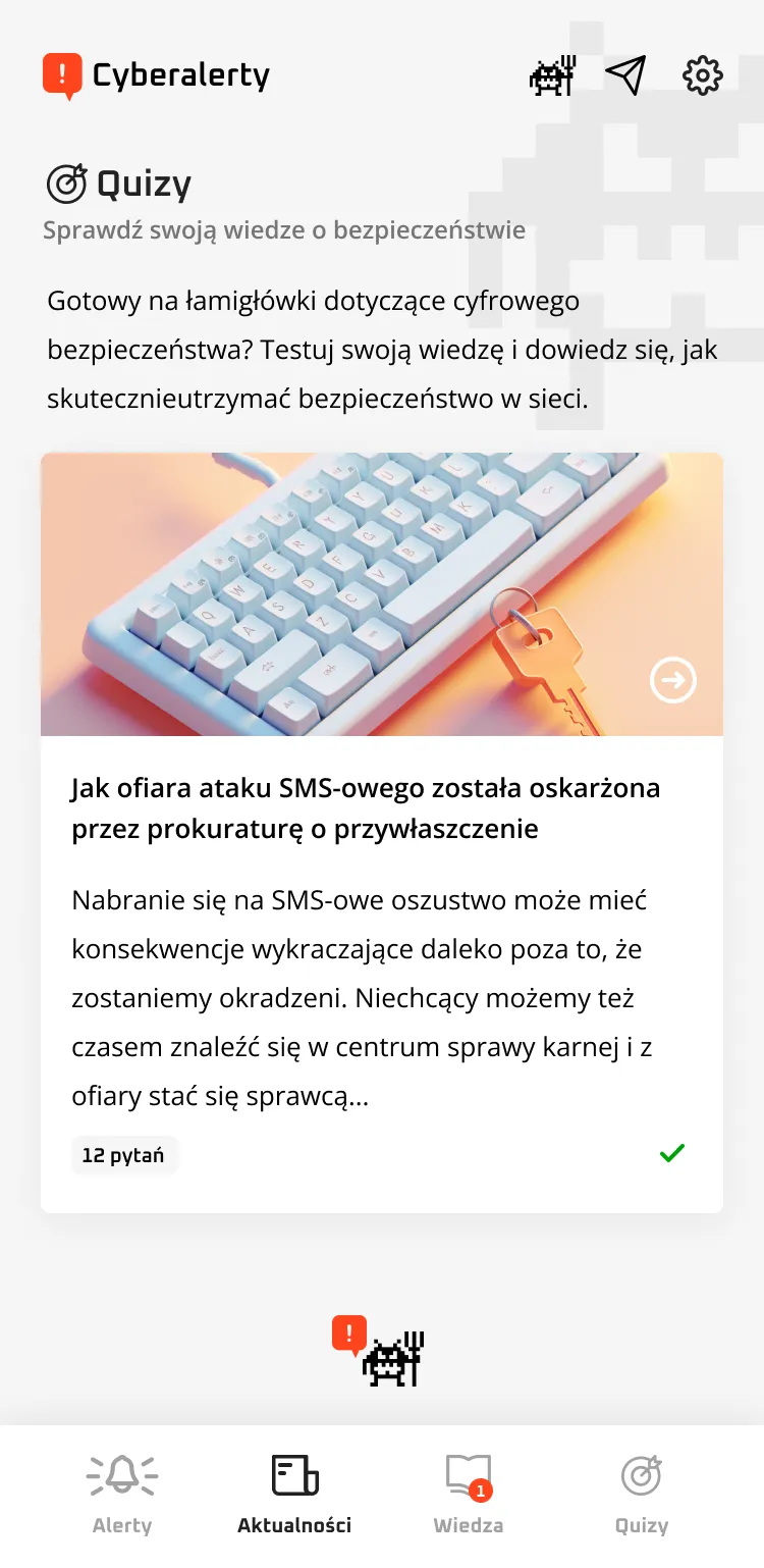 The internet is full of threats. To protect against them, the Danger's team prepared the CyberAlerta application. It's kind of like RCB Alerts but about cybersecurity. The application will show you an alert (warning) whenever a new type of fraud or mass attack appears on the Polish Internet, as a result of which you may lose data or money. CyberAlerts are sent in the form of push notifications. You can unsubscribe at any time. In addition to the warnings, the application also gives you access to practical guides that will help you better protect yourself against cybercriminals. ...