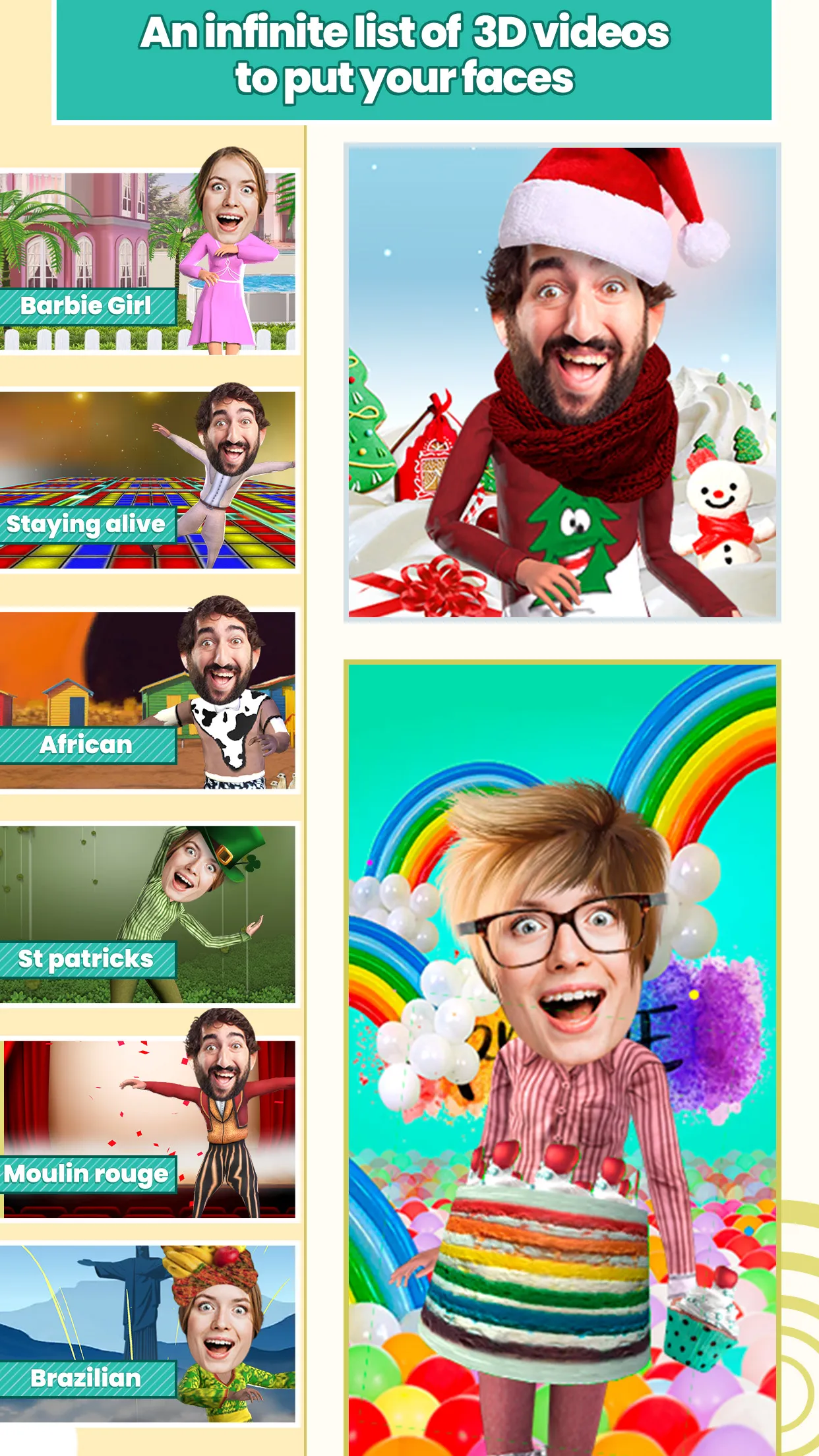 Choose your favorite scene, put your face in a hole and turn yourself into a dancing star. Create funny videos with your face in! Download now and try the most hilarious gif animations with your face in! Select a funny scenario that suits you and use our face montage tool to put your face in another body easily. Place your face in the gif animations and instantly create short video clips to share. Whatever kind of dancer you are, you can find a funny dance move to suit yourself. Check out the ...