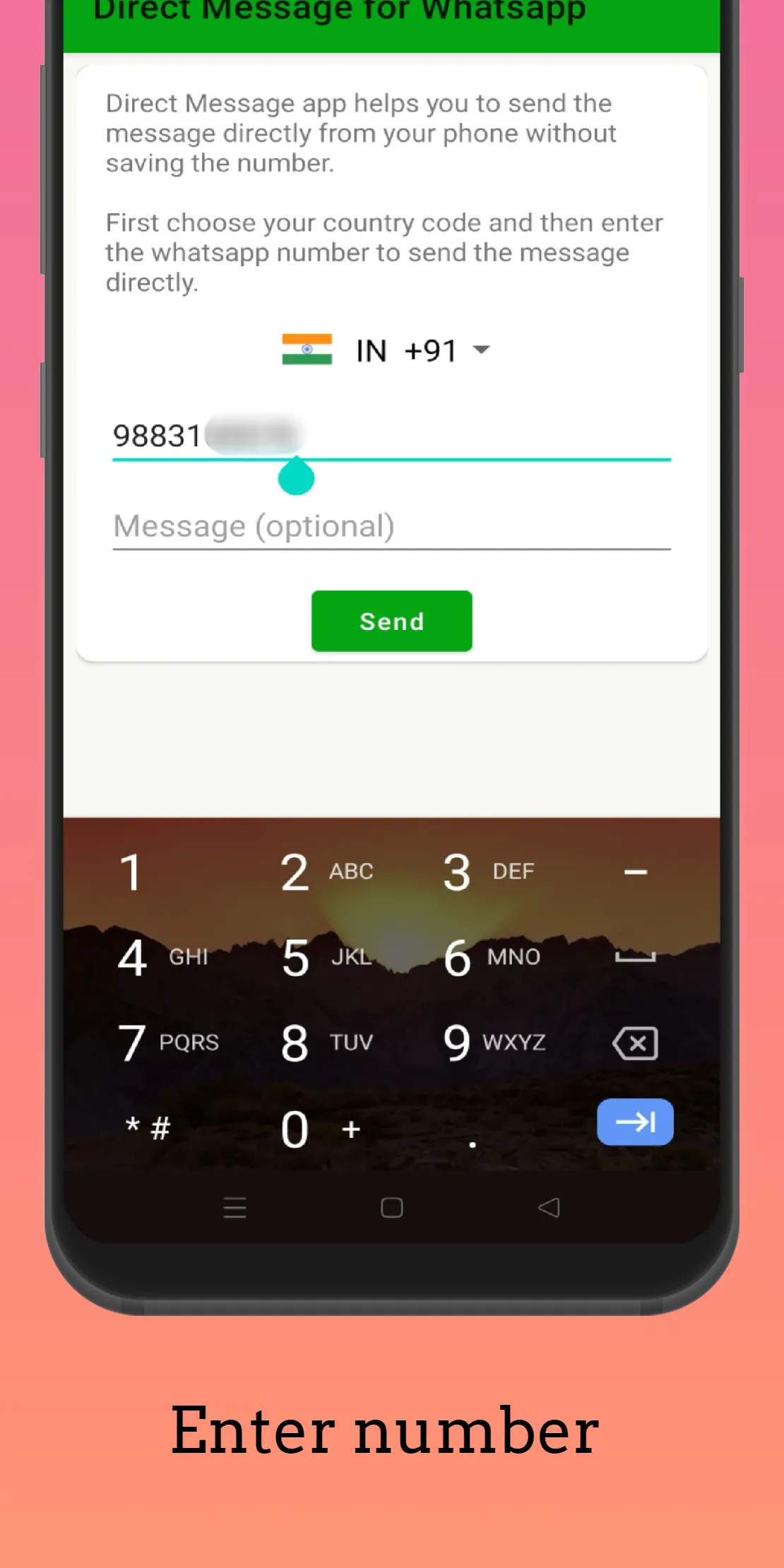 Are you frustrated by saving the temporary contacts for sending messages in WA for business or other purposes? Then this Direct Message For WA app is the great tool you are looking for. This app can directly open chat into the WA and WA business without saving the number. Once the chat is started, you can send media files or anything you want. How does this work :- 1️⃣Open the app...