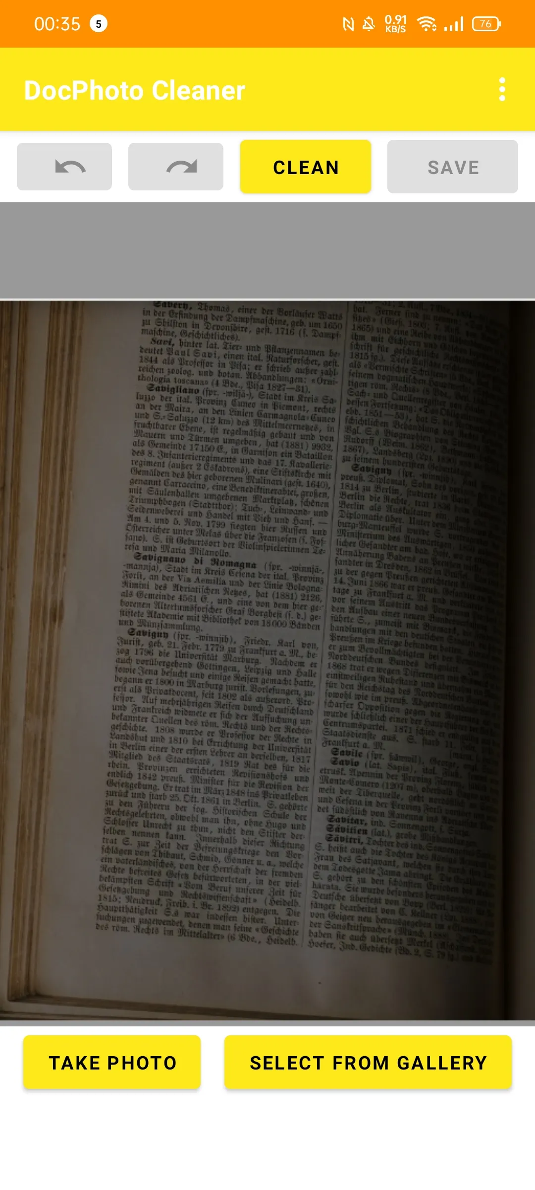 • AI-based document photo cleaning and enhancement. • Removes stains, corrects lighting issues, and enhances overall image quality. • Makes document background perfectly white, reducing printer ink usage. • Supports image sizes up to 1280x960 and 960x1280. Larger images will be resized. • Process images on-device, without sending them to any server. • Works offline, without internet access....
