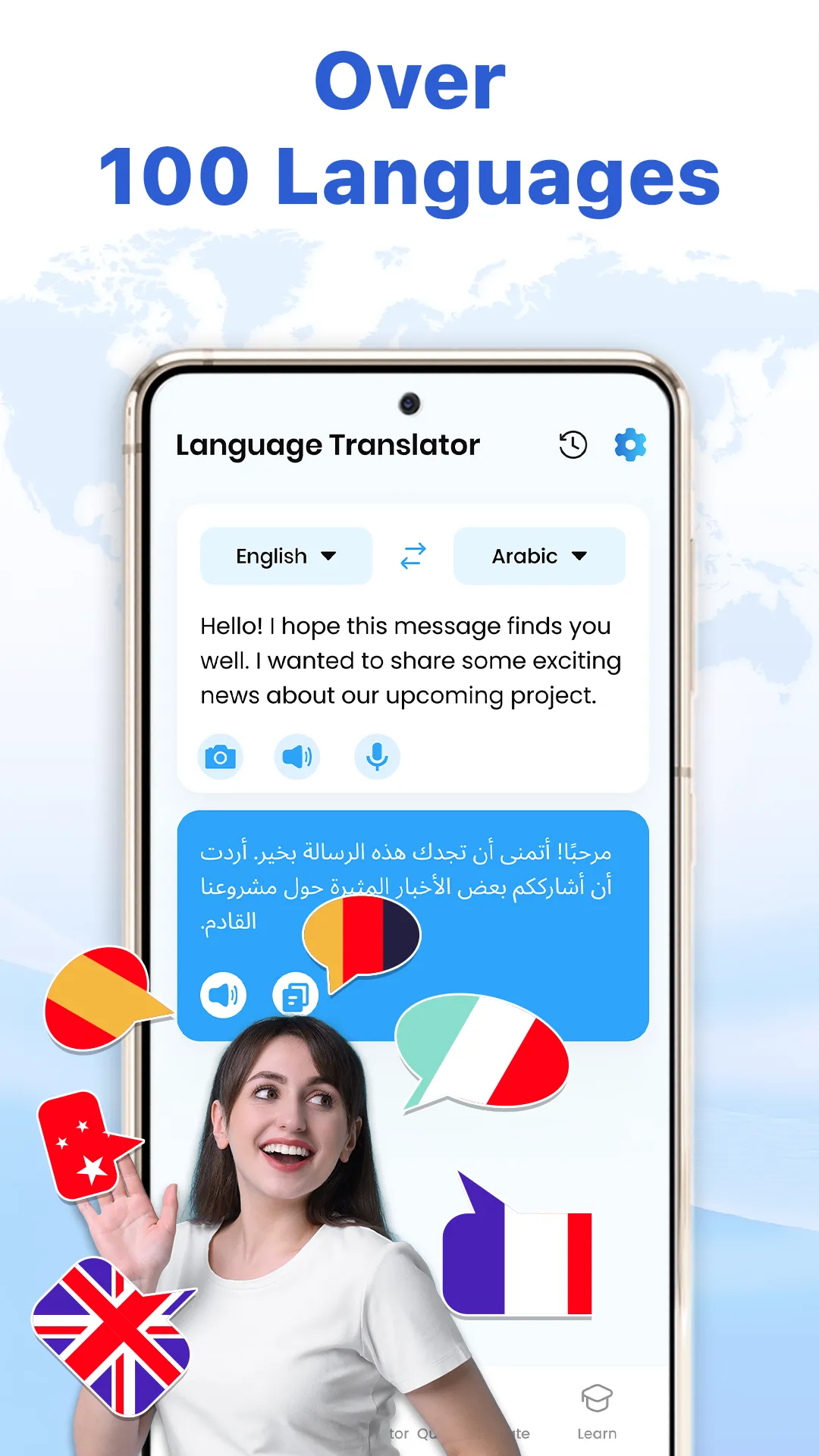 With AI Translator All Languages, language barriers are overcome and language learning becomes effortless. Whether for travel adventures, international work, or keeping in touch with friends around the globe, this language translator app for all languages delivers smooth, real-time communication anywhere. ✨ AI Translator All Languages – Smart Language Translator ✔ Effortlessly turn text, conversations, and images into your language. ✔ Swap languages in real time for natural communication worldwide. ✔ Stay connected anywhere with offline translation, even without Wi-Fi....