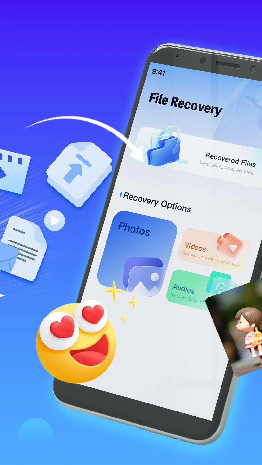 Accidentally lost your precious photos? Don't panic! Try this File Recovery app which Scan & Display all hidden files that help you get back your lost images on your Android device, whether they were accidentally deleted by you or hidden in other apps. This powerful app employs cutting-edge data recovery technology to scan your storage and retrieve deleted photos, even from formatted or corrupted memory cards. With a user-friendly interface and step-by-step guidance, File Recovery ensures a smooth and hassle-free photo retrieval process. Safeguard your cherished memories and never lose another precious moment. Whether it's an accidental deletion or a storage mishap, File Recovery has you covered. Download now and reclaim your memories with ease. While we strive to recover as many files as possible, please note that complete restoration of all deleted files cannot be guaranteed....