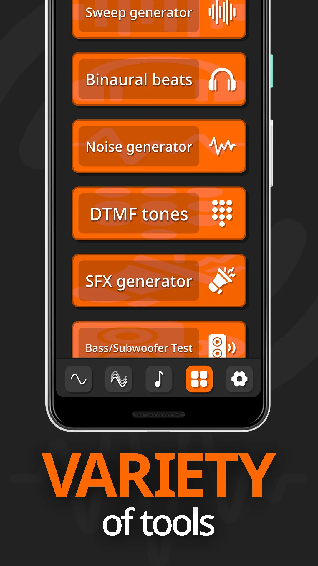 All frequency sound generator tools in one app! Tone generation, sound tests, musical tuning and many more. This app helps if you are looking for generating sounds in different frequencies, analyzing sound and making sound tests which produce sound waves based on the desired tone. Frequency sound generator includes user-friendly and very high-quality tone generation tools: • Single frequency generator • Multiple frequency tone generation • Musical notes presets...