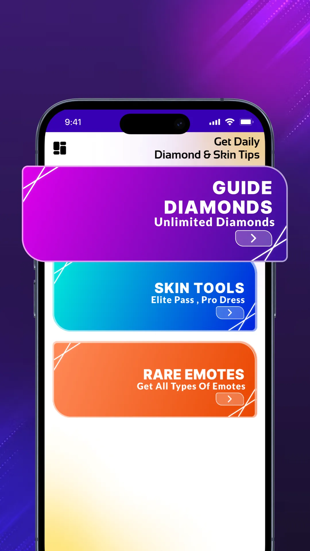 Get Daily Diamond - Guide gives best info for beginners, mediators and advance level step by step. Using this app "Get Daily Diamond - Guide", Users can obtain suggestions for Vehicles Skin, Characters, Weapons Skins, Parachute, Trending Maps and Emotes for entertainment with this straight forward app. Features of this app: - Diamonds Guide & Calculator...