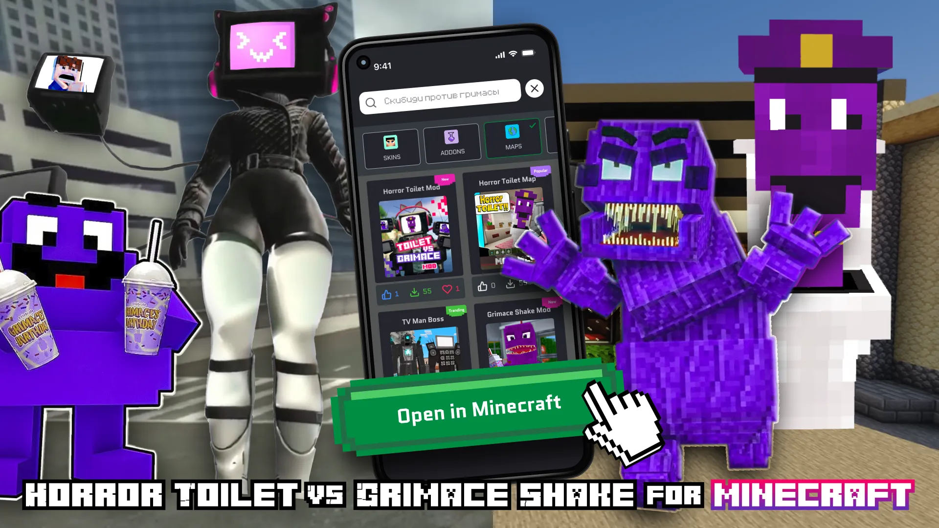 Horror Toilet Mods Minecraft, a thrilling addition that brings the wild world of your favorite block-building game! Engage in an interdimensional showdown as the Grimace Shake. Embark on an unforgettable journey with the infamous Grimace Shake – a purple milkshake that holds a sinister secret. Delve into a storyline where the taste of this concoction leads to unimaginable horrors. Face your deepest fears as you sip the Grimace Shake and encounter a series of chilling events that will keep you on the edge of your seat. Elevate your gameplay with a collection of meticulously horror mods, maps and addons that introduce new elements of fear into your Minecraft universe. Uncover hidden dimensions, encounter terrifying creatures, and manipulate the very fabric of reality with these spine-tingling additions. Each mod and addon is designed to enhance your experience, making your exploration of the unknown all the more exhilarating. Regular Updates and Support:...