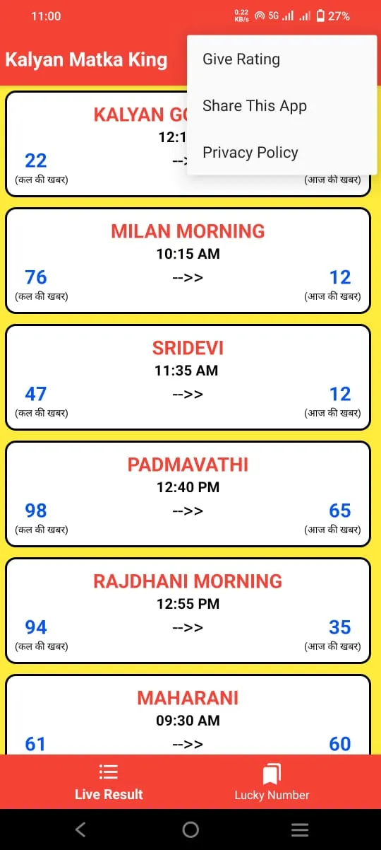 Kalyan Matka King App is providing all satta matka results, Like kalyan Gold Night, milan morning, rajdhani morning, Sridevi, maharani etc. Live Matka Results Matka Kalyan matka apps provide live results and fastest matka app. For every market we publish game early in our app and these are the few game names kalyan Gold Night, milan morning, rajdhani morning, Sridevi, maharani etc. If you have any feedback or suggestions, please write to us at